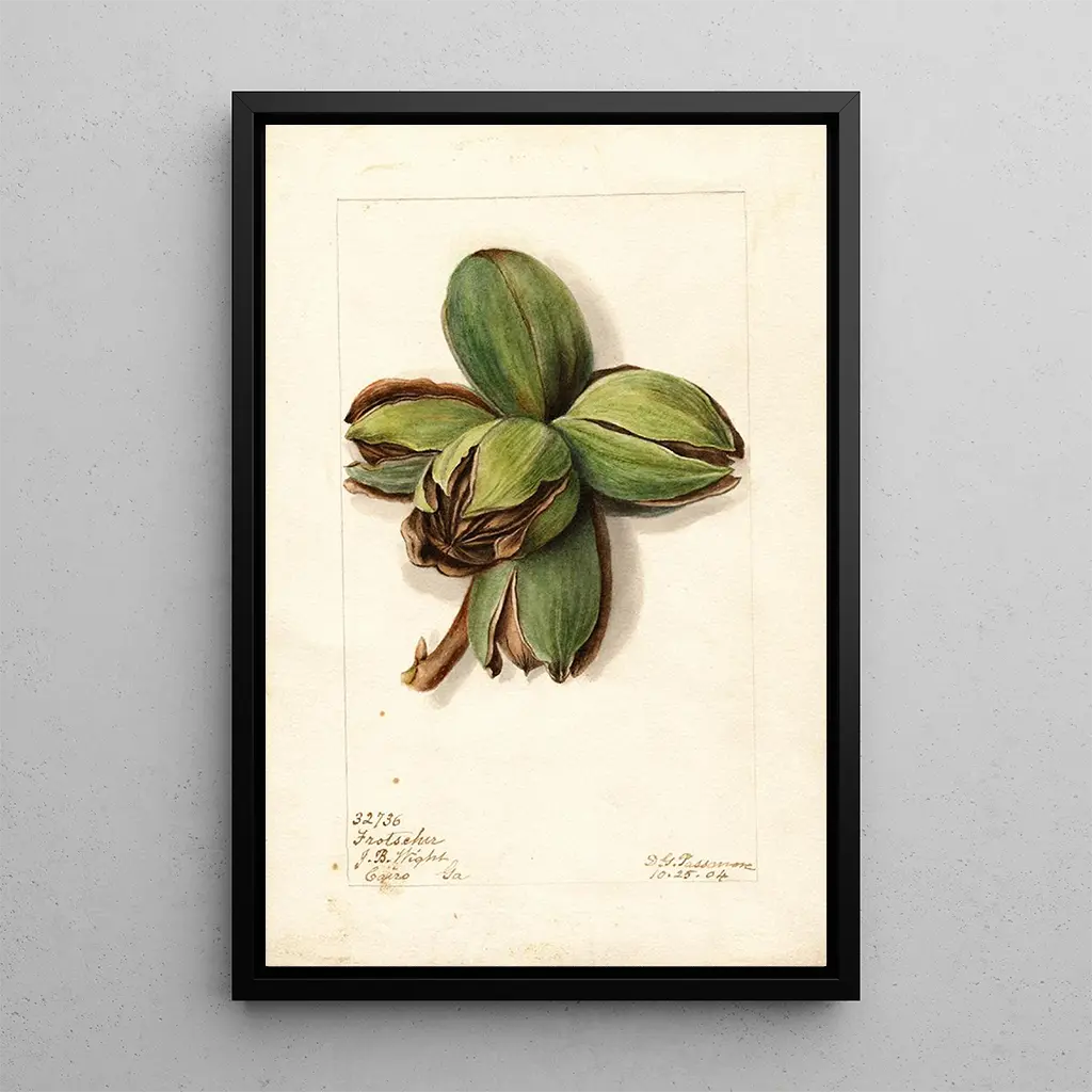 Carya Frotscher : an ode to lush nature The art print of Carya Frotscher by Deborah Griscom Passmore is a celebration of natural beauty, where shades of green blend with touches of brown and gold. This piece, created with a refined watercolor technique, evokes the majesty of trees and the richness of flora. Every branch, every leaf is rendered with such delicacy that it seems to vibrate under the breath of the wind. The overall atmosphere of the canvas invites peaceful contemplation, transporting the viewer to a lush garden full of life and colors. Deborah Griscom Passmore : an artist committed to botanical representation Deborah Griscom Passmore made her mark with her unique approach to botanical art. Active in the late 19th century, she skillfully combined art and science, drawing inspiration from the botanical discoveries of her time. Her work was influenced by the naturalist movement, which aimed to depict nature with scientific accuracy. As a female artist in a male-dominated field, Passmore paved the way for many other artists, leaving a lasting impact on the world of floral and botanical art. A decorative acquisition with multiple virtues The art print of Carya Frotscher is a decorative piece that fits perfectly into various environments, whether in a living room, office, or bedroom. Its printing quality ensures remarkable fidelity to the details and colors of the original work, bringing a touch of nature to your living space. With its aesthetic appeal, this canvas is ideal for those who wish to enrich their interior decor while celebrating the beauty of nature.