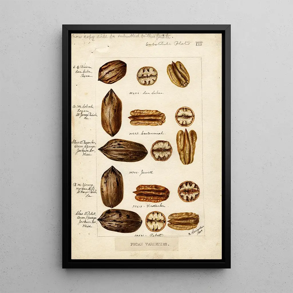 Carya illinoinensis : an ode to generous nature The art print Carya illinoinensis, created by Bertha Heiges, immerses us in a universe where nature expresses itself with brilliance. The shades of green and brown blend harmoniously, evoking the richness of the leaves and the robustness of the trunk of this iconic tree. The watercolor technique used by the artist lends a lightness to the overall composition, while capturing the delicate details of the leaves. The atmosphere emanating from this art print is both soothing and inspiring, inviting the viewer to connect with the simple beauty of nature. Bertha Heiges : a pioneer of botanical art Bertha Heiges is a recognized artist for her contribution to botanical art in the early 20th century. Influenced by the artistic movements of her time, she skillfully combined scientific precision with artistic sensitivity in her works. Her period of creation coincides with a renewed interest in nature and botany, which allowed her to stand out in a field often dominated by more conventional styles. Carya illinoinensis demonstrates her commitment to representing flora with rare authenticity, while highlighting the importance of preserving nature. A decorative art print with multiple assets The art print of Carya illinoinensis is a decorative piece that will enhance any space, whether a living room, office, or bedroom. Its printing quality guarantees remarkable fidelity to the colors and details of the original artwork, allowing you to fully enjoy its aesthetic appeal. By incorporating this art print into your decor, you bring a touch of nature and serenity to your interior, while celebrating Bertha Heiges' talent. This canvas is an ideal choice for those who appreciate the beauty of the natural world and wish to include it in their daily environment.