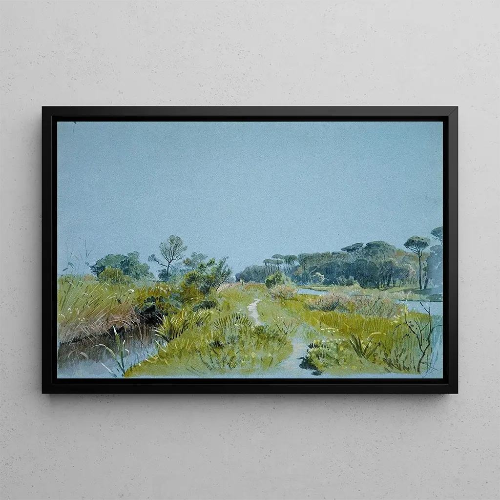 The art print "Castel Fusano near Rome" by William Stanley Haseltine evokes the splendor of Italian landscapes. With its vibrant colors and golden light, this art print transports the viewer to the heart of the Roman countryside. The detailed depiction of the castle, surrounded by greenery and blue sky, creates an atmosphere of tranquility and charm. Haseltine's technique, blending realism and impressionism, allows you to feel the warmth of the sun and the softness of the air. Every element of the composition seems to tell a story, inviting exploration of the wonders of this iconic region.