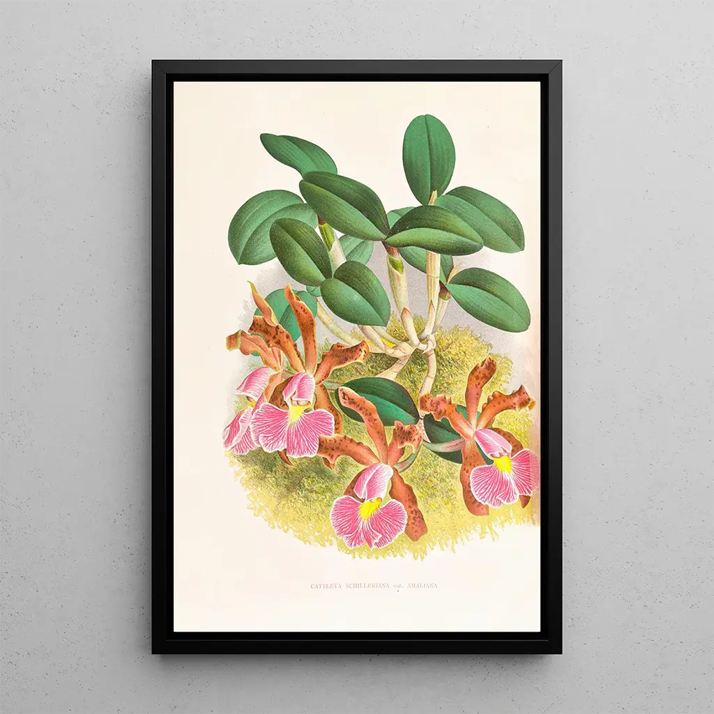Cattleya schilleriana : a burst of floral colors The art print of Cattleya schilleriana is a true tribute to the beauty of nature. This work by Jean Jules Linden captures the very essence of the orchid, with its vibrant petals and delicate shades of violet and white. The artist's technique, blending watercolor and drawing, brings to life every detail, from the veins of the petals to the reflections of light. The atmosphere conveyed by this canvas is both soothing and enchanting, inviting the viewer to immerse themselves in a world of floral serenity. Jean Jules Linden : a pioneer of botanical art Jean Jules Linden, active in the 19th century, is recognized as one of the great masters of botanical art. Originating from Belgium, he dedicated his career to the study and representation of exotic plants, influenced by the botanical explorations of his time. His works, including Cattleya schilleriana, demonstrate scientific precision combined with artistic sensitivity. Linden traveled around the world, collecting specimens and drawing inspiration from tropical landscapes, which allowed him to create paintings of rare beauty and significant importance in the field of botanical illustration. A decorative acquisition with multiple advantages Choosing an art print of Cattleya schilleriana means selecting a decorative piece that will enhance any space, whether a living room, an office, or a bedroom. The quality of the print ensures faithful reproduction of the colors and details of the original work, offering undeniable aesthetic appeal. This canvas will bring a touch of nature and freshness to your interior, while also impressing visitors. By integrating this piece into your decor, you opt for a unique work that evokes the fleeting beauty of flowers.