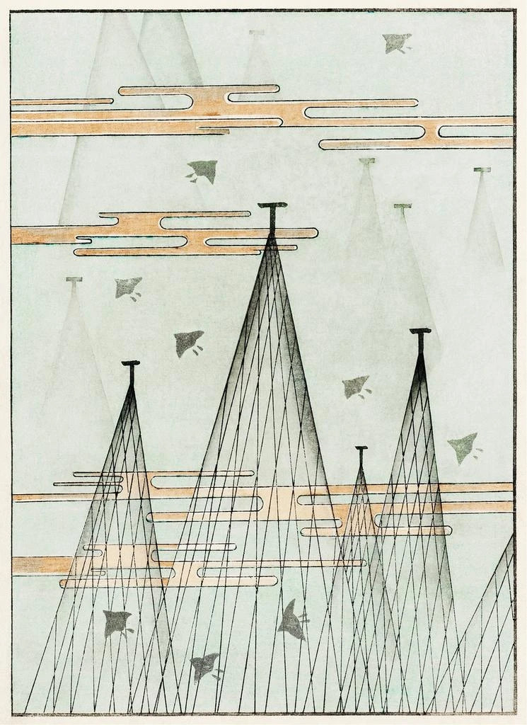 Painting Celestial landscape with flying birds - Watanabe Seitei | Art print