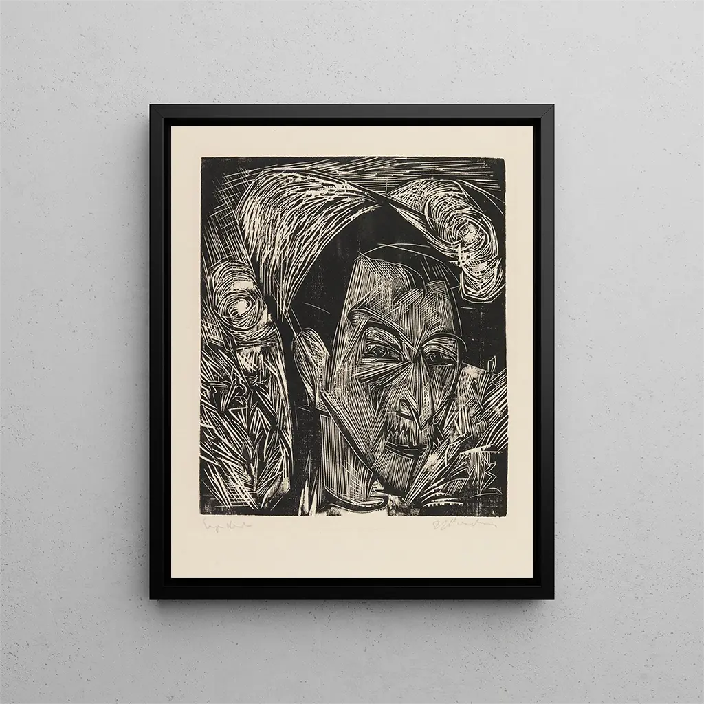 In the vibrant world of modern art, some works stand out for their ability to capture the very essence of the human experience. The art print Chef David Müller - Ernst Ludwig Kirchner is one of those creations that transcend the simple frame of painting to offer a profound reflection on the human condition. Kirchner, an iconic figure of the expressionist movement, manages to establish an intimate dialogue between the viewer and the subject, here represented by the chef David Müller. This painting, with its vibrant energy and bold colors, immerses us in an atmosphere that is both unsettling and fascinating. Style and uniqueness of the piece Kirchner's work is characterized by a bold use of color and shapes, which combine to create a unique dynamic. In the depiction of David Müller, the artist does not merely portray a faithful portrait but strives to capture the soul of the subject. The facial features, accentuated by expressive brushstrokes, reveal an emotional depth that goes beyond mere appearance. The colors, often vivid and contrasting, evoke an intensity that draws the eye and stimulates the imagination. Kirchner plays with shadows and lights to bring his subject to life, creating an atmosphere where the viewer can almost feel the thoughts and emotions of the character. This innovative approach, where subjectivity prevails over objectivity, makes this work an emblematic example of the expressionist style. The artist and his influence Ernst Ludwig Kirchner, born in 1880, is one of the founders of the German expressionist movement. His artistic journey is marked by an incessant quest for freedom of expression and a desire to detach from academic conventions. Kirchner, through his works, has explored themes of modernity, alienation, and urban life, while drawing inspiration from his travels and the cultures around him. His influence on his contemporaries and subsequent generations is undeniable. By integrating elements of primitive culture and merging them with the concerns of his time, he paved the way for new forms of artistic expression. The artists who have