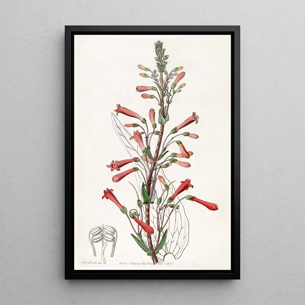Chelone à feuilles de valériane : une harmonie florale délicate La reproduction de la Chelone à feuilles de valériane, œuvre de Sydenham Edwards, nous plonge dans un univers botanique où la précision des détails se marie à une palette de couleurs vibrantes. Les nuances de vert et de rose s’entrelacent, créant une atmosphère apaisante et vivifiante. La technique de l’aquarelle, maîtrisée par Edwards, permet de capturer la légèreté des pétales et la texture des feuilles, offrant une représentation fidèle de cette plante. Chaque élément est soigneusement mis en valeur, invitant le spectateur à une contemplation attentive et à une appréciation de la beauté naturelle. Sydenham Edwards : un pionnier de l’illustration botanique Sydenham Edwards, actif au début du XIXe siècle, est reconnu pour son rôle essentiel dans l’illustration botanique. Influencé par les mouvements artistiques de son époque, il a su allier science et art, rendant hommage à la flore à travers des œuvres d’une grande précision. Ses illustrations, comme celle de la Chelone à feuilles de valériane, témoignent d’un profond respect pour la nature et d’un désir de documenter la biodiversité. Edwards a collaboré avec des botanistes renommés, contribuant ainsi à l’avancement des connaissances botaniques tout en laissant un héritage artistique durable. Une acquisition décorative aux multiples atouts La reproduction de la Chelone à feuilles de valériane est une pièce décorative idéale pour embellir divers espaces tels que le salon, le bureau ou la chambre. Sa qualité d’impression garantit une fidélité aux couleurs et aux détails de l'œuvre originale, apportant une touche d'élégance et de sérénité à votre intérieur. Ce tableau, en plus de son attrait esthétique, évoque une connexion avec la nature, créant une atmosphère chaleureuse et accueillante. En choisissant cette toile, vous faites le choix d’un art intemporel qui saura enrichir votre décoration tout en suscitant l’admiration de vos invités.