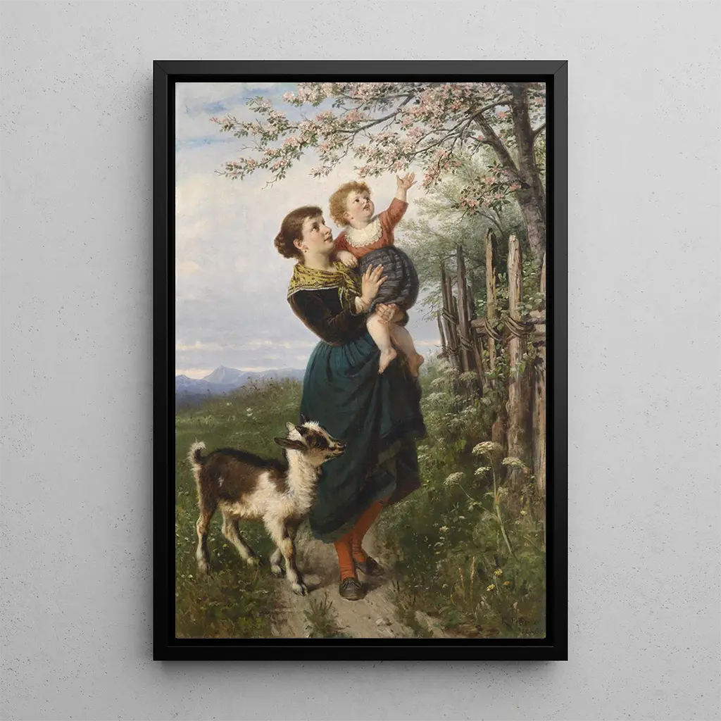 Les Fleurs de cerisier, œuvre emblématique de Rudolf Epp, évoque la délicatesse et la fugacité de la nature. La composition, riche en détails, présente des branches ornées de fleurs roses éclatantes, contrastant avec un ciel bleu clair. La technique de l’aquarelle, maîtrisée par Epp, confère à l’ensemble une légèreté presque aérienne. L’atmosphère qui se dégage de cette toile invite à la contemplation, à la rêverie, et rappelle la beauté éphémère du printemps. Chaque pétale semble vibrer sous la lumière, créant une harmonie visuelle qui transporte le spectateur dans un univers poétique.