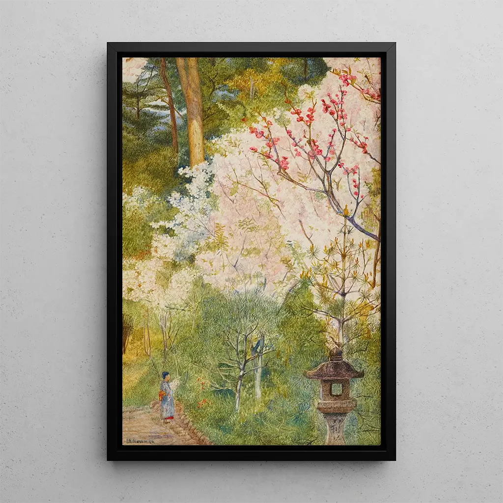 "Fleurs de cerisier à Kyoto" de Henry Roderick Newman capture la magie des cerisiers en fleurs, symbole de la beauté fugace de la nature. Les teintes pastel, allant du rose délicat au blanc pur, se mêlent harmonieusement pour créer une atmosphère paisible et rêveuse. La technique de Newman, qui privilégie les coups de pinceau légers et fluides, donne vie à chaque pétale, évoquant la douceur d'un printemps japonais. Cette toile invite à la contemplation, nous rappelant que la beauté réside souvent dans l'éphémère.