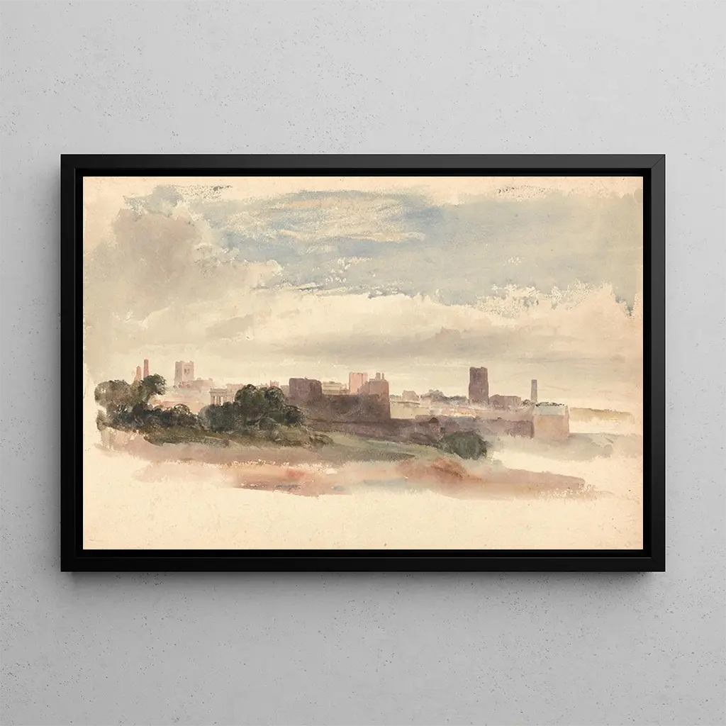"Chester" is an art print that evokes the timeless beauty of the English landscapes. Peter DeWint, with his mastery of watercolors, captures the light and atmosphere of this historic city. The delicate nuances of green and blue, combined with touches of earth tones, create a visual harmony that transports the viewer to a moment of serenity. The composition, highlighting medieval architecture and the surrounding nature, invites peaceful contemplation. Each brushstroke reveals the artist's passion for his subject, making this art print particularly attractive.