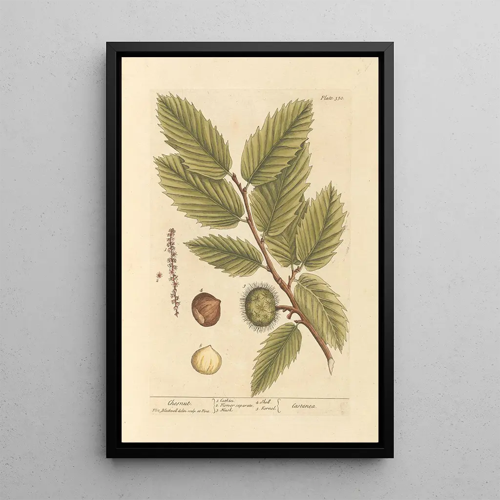 Châtaigne : an ode to generous nature The art print Châtaigne by Elizabeth Blackwell is a piece that celebrates the beauty of organic forms. With its warm shades of brown and green, it evokes the richness of forests and the sweetness of ripe fruits. The copper engraving technique used by the artist allows for each detail to be rendered with remarkable precision, creating an atmosphere that is both realistic and poetic. This canvas invites attentive contemplation, where one can almost feel the texture of the châtaigne and the scent of the undergrowth. The harmonious composition and subtle lighting highlight the natural beauty of this iconic fruit. Elizabeth Blackwell : pioneer of botanical illustration Elizabeth Blackwell, active in the 18th century, is recognized for her significant contributions to botanical illustration. Born in 1707, she was one of the first women to make a name for herself in a male-dominated field. Her works, including the art print Châtaigne, testify to a passion for nature and scientific rigor. Influenced by the artistic movements of her time, Blackwell knew how to combine precision and aesthetics, paying tribute to the diversity of the plant world. Her work has had a lasting impact on botanical art, inspiring many artists and scientists throughout the centuries. A decorative acquisition with multiple assets The reproduction of the Châtaigne painting is a decorative piece that fits perfectly into various spaces, whether in a living room, office, or bedroom. Its print quality and fidelity to the original colors make it an ideal choice for those wishing to bring a touch of nature into their interior. The aesthetic appeal of this artwork lies in its ability to evoke serenity and warmth, creating a welcoming atmosphere. By choosing this canvas, you opt for a decoration that combines elegance and simplicity, while celebrating the beauty of nature.