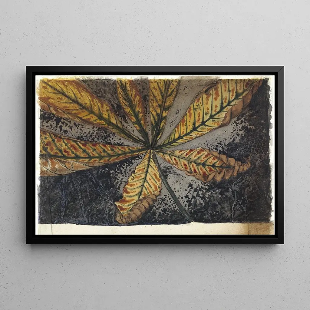 The art print of "Horse Chestnut Leaf" is a decorative piece that fits perfectly into various spaces such as the living room, office, or bedroom. Its printing quality guarantees remarkable fidelity to the colors and details of the original artwork, bringing a touch of nature to your interior. With its undeniable aesthetic appeal, this piece will attract art lovers and botanical enthusiasts alike, while adding a note of serenity to your decor.