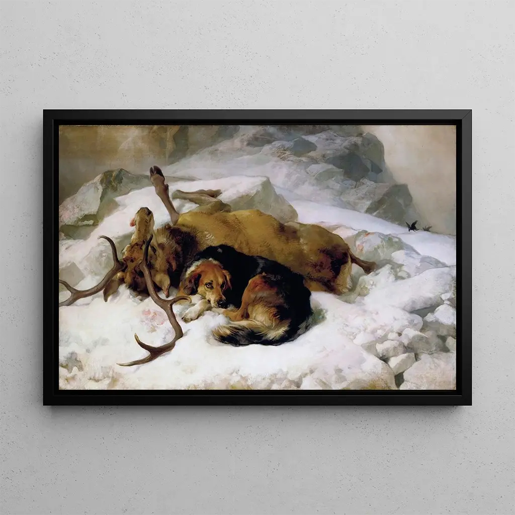 The art print of Chevy, created by Sir Edwin Henry Landseer, captures the very essence of canine nobility. In this piece, the piercing gaze of the dog, both proud and protective, immediately draws attention. The warm, earthy colors, combined with shades of brown and black, create an atmosphere that is both intimate and wild. Landseer's technique, blending realism and romanticism, brings every detail to life, from the fur to the reflections in the eyes. This canvas evokes a deep connection between man and animal, inviting the viewer to contemplate the beauty and loyalty of man's best friend.