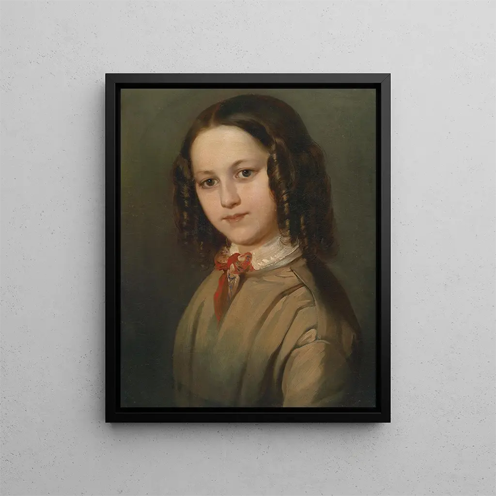 Portrait of Mélanie Deinhardstein's childhood by Anton Romako – Captivating introduction The "Portrait of Mélanie Deinhardstein's childhood" by Anton Romako is a work that transcends the simple frame of painting to become a true window into the soul of a young girl. Captured with extraordinary delicacy, this representation invites us to delve into a universe where innocence and youthful curiosity meet. Romako, through this artwork, manages to immortalize not only Mélanie's features but also the very essence of her being. Every brushstroke seems to breathe life, and one can almost hear the laughter of childhood echoing beyond time. Style and uniqueness of the work Anton Romako's style is distinguished by his ability to blend realism with a touch of romanticism. In this art print, the nuances of colors and the subtly diffused light on Mélanie's face create an intimate and warm atmosphere. The meticulous details, such as the reflections in her sparkling eyes and the delicate texture of her hair, testify to the artist's technical skill. Romako does not merely depict a child; he evokes an emotion, a story, a moment frozen in time. The composition, centered on Mélanie's face, draws the eye and allows the viewer to engage in a silent dialogue with the subject, thus revealing the depth of her character and dreams. The artist and his influence Anton Romako, born in 1832 in Austria, was a painter whose work is often marked by a particular sensitivity to human emotions. Influenced by the Romantic movement, he sought to capture not only the appearance of his subjects but also their deepest feelings. His career, rich in portraits and genre scenes, demonstrates a constant desire to explore the complexity of human nature. Romako established himself in the art world thanks to his refined technique and unique vision, influencing many contemporary and future artists. The portrait of Mélanie Deinhardstein is a perfect example of his approach, where each stroke is charged with meaning and