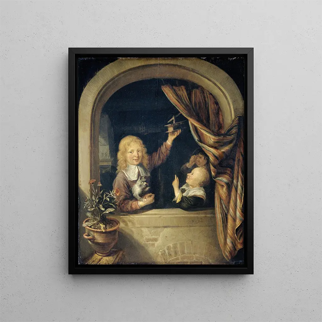 Dans l'univers riche et fascinant de l'histoire de l'art, certaines œuvres se distinguent par leur capacité à capturer des moments de la vie quotidienne avec une délicatesse et une profondeur émotionnelle rares. "Enfants avec une souricière" de Domenicus van Tol est l'une de ces créations qui transcende le simple cadre pictural pour nous plonger dans un monde empreint de nostalgie et d'innocence. Cette œuvre, qui évoque la curiosité enfantine et la magie de l'enfance, nous invite à explorer les subtilités de la nature humaine à travers le prisme de la peinture baroque. Chaque coup de pinceau semble raconter une histoire, une anecdote figée dans le temps, où les enfants, au centre de la composition, deviennent les protagonistes d'un récit visuel captivant.