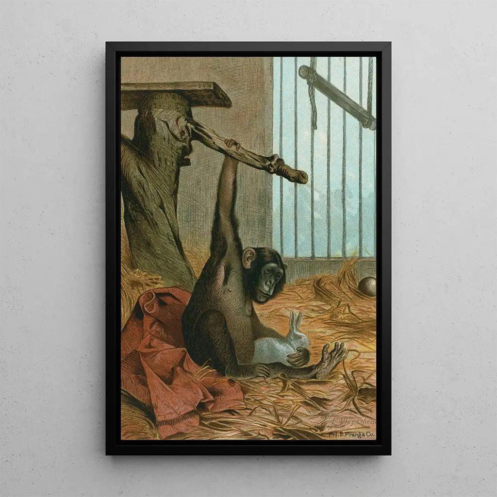 The reproduction of the "Chimpanzee" painting is an ideal decorative item for a living room or office, adding a touch of exoticism and curiosity. Its printing quality guarantees fidelity to the colors and details of the original artwork, while offering undeniable aesthetic appeal. Hung on a wall, this art print draws the eye and sparks conversations, making it an excellent choice for art and nature enthusiasts. By integrating this canvas into your decor, you add not only a piece of art but also a reflection on our relationship with animals.