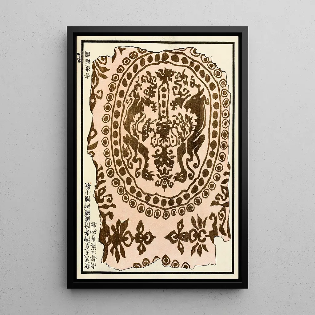 The art print Chinese Prints pl52 evokes a world of serenity and mystery. The delicate colors and refined patterns intertwine to create a calming atmosphere, where every detail invites escape. The engraving technique, characteristic of oriental art, gives the piece a unique depth and texture, while the shades of blue and green recall the beauty of natural landscapes. This artwork transports the viewer to a universe where nature and art converge, offering endless contemplation.