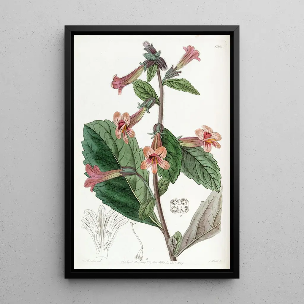The art print of the Rehmannia Chinese transports us to a world where botany and art meet with elegance. The warm shades of pink and green intertwine to create a harmonious composition, revealing the delicate beauty of this medicinal plant. The technique of Sydenham Edwards, both meticulous and expressive, captures the very essence of the Rehmannia, evoking an atmosphere of tranquility and well-being. Every detail is carefully rendered, inviting the viewer to appreciate the splendor of nature.