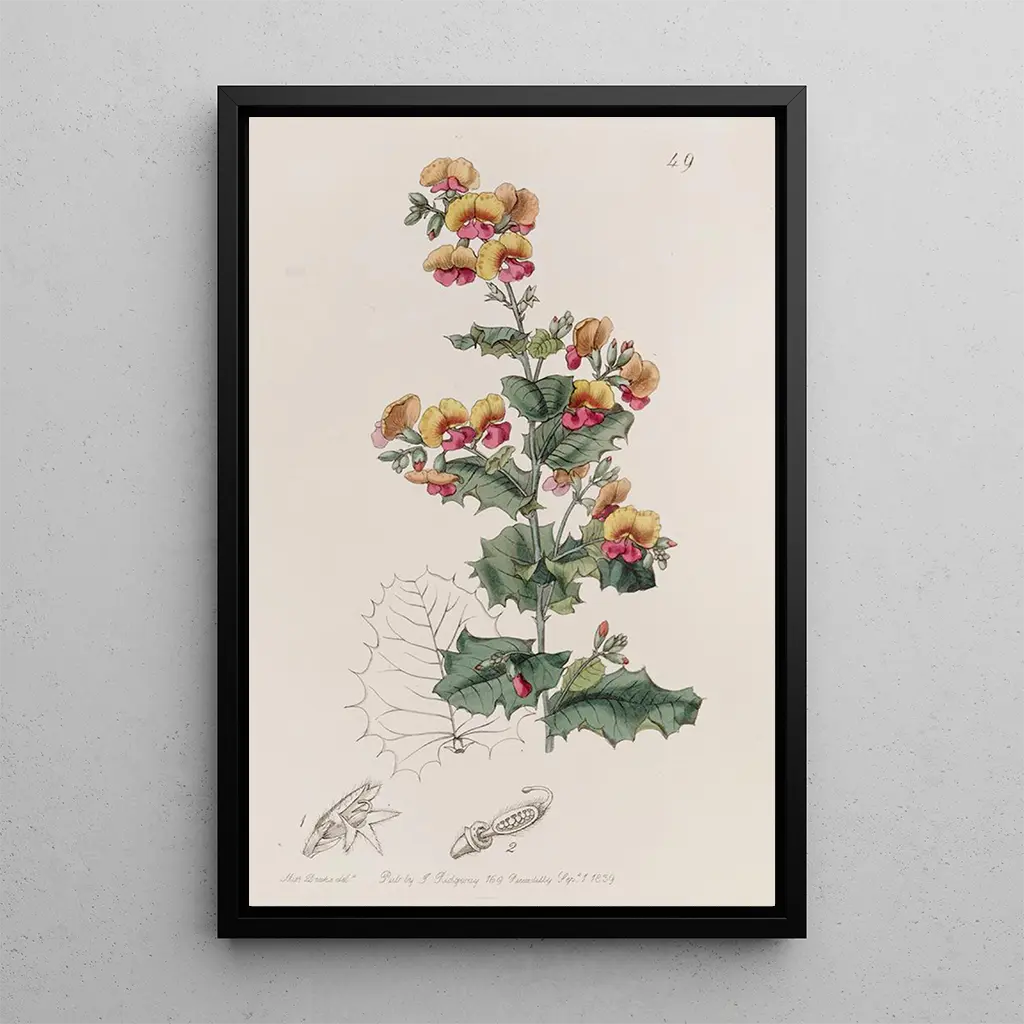 The reproduction of the "Chorozema with Varied Leaves" is a decorative choice that will enhance any space, whether it is a living room, an office, or a bedroom. Its print quality and fidelity to the original work make it a valuable addition for art and botany enthusiasts. This artwork, with its refined aesthetic, brings a touch of freshness and nature to your interior. By choosing this art print, you opt for a piece that not only beautifies your decor but also evokes the richness and diversity of the plant world.