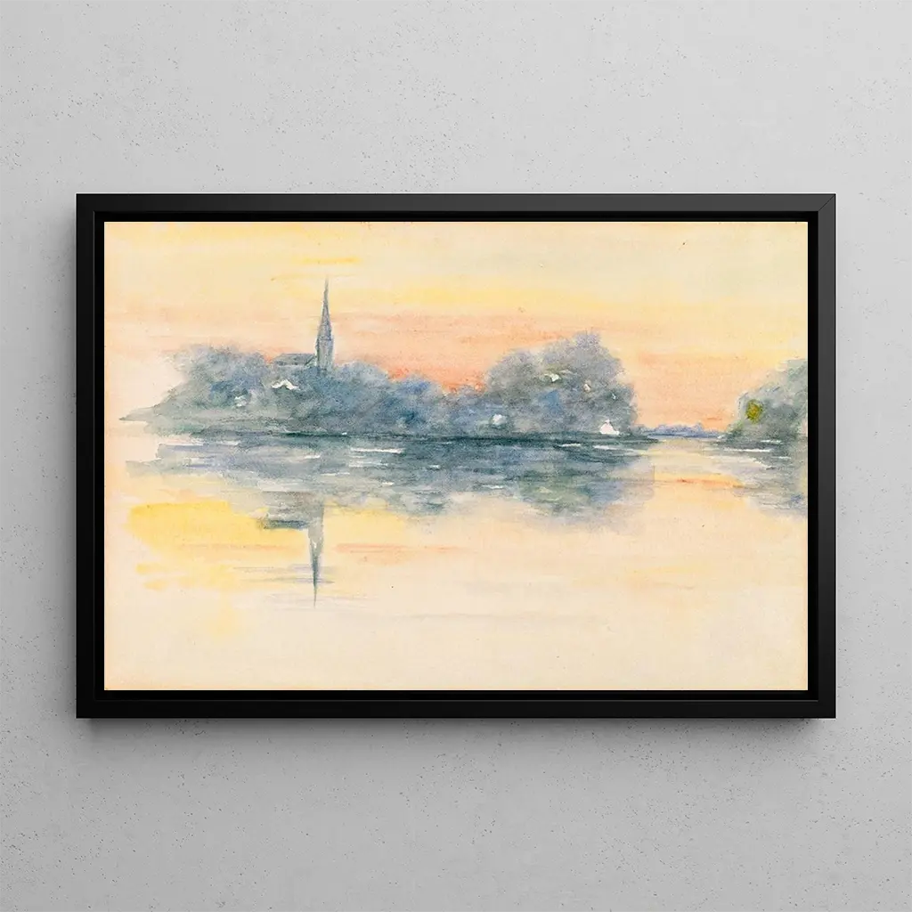 Church and Lake: a painting imbued with serenity In this artwork, Henry Bacon transports us to the heart of an idyllic landscape where the church stands majestically beside a peaceful lake. The soft and soothing colors, ranging from light blues to gentle greens, create an atmosphere of tranquility. Bacon's technique, blending realism and impressionism, captures the natural light reflecting on the water, adding an almost spiritual dimension to the scene. Every detail, from floating clouds to delicate foliage, invites silent contemplation, as if time has stood still to appreciate the beauty of nature. Henry Bacon: a master of American landscape painting Henry Bacon, active at the end of the 19th century and the beginning of the 20th century, is renowned for his evocative landscapes that celebrate the beauty of the United States. Influenced by the Impressionist movement, he skillfully integrated elements of light and color that make his works vibrant and lively. His work reflects a time when American art was beginning to stand out on the global stage, and he played a key role in this evolution. Although less well-known than some of his contemporaries, Bacon left a lasting mark through his ability to capture the essence of American landscapes. A decorative acquisition with multiple advantages The art print of the work Church and Lake is an ideal decorative piece for various living spaces, whether in a living room, office, or bedroom. Its print quality and fidelity to the original colors make this canvas an attractive choice for those wishing to bring a touch of serenity to their interior. By hanging this art print, you not only invite the beauty of nature into your home but also create an atmosphere of calm and reflection. It is a addition that will appeal to art lovers and landscape enthusiasts alike.