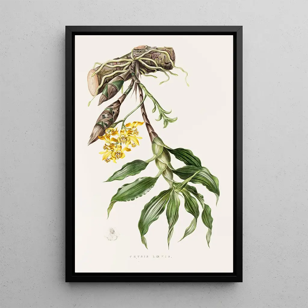 Chysis Loevis: an enchanting floral dance The art print of Chysis Loevis invites us to discover an orchid with delicate shapes and vibrant colors. With its petals of a bright yellow and shades of red, this piece immediately captures attention. The watercolor technique, mastered by James Bateman, allows for the rendering of the transparency and lightness of the flowers, creating an almost dreamlike atmosphere. Every detail is carefully crafted, offering a realistic and poetic vision of this fascinating plant. This painting is a true ode to natural beauty, capturing the very essence of tropical flora. James Bateman: an artist dedicated to botany James Bateman, a 19th-century botanist and artist, is renowned for his contributions to botanical illustration. His work is set in a context where science and art converge, enabling the documentation of biodiversity richness. Influenced by the botanical discoveries of his time, Bateman was able to capture the beauty of plants with remarkable precision. His illustrations, including the art print of Chysis Loevis, have become references for botanical and art enthusiasts. His work reflects a commitment to nature and a desire to raise public awareness about its preservation. A decorative acquisition with multiple advantages The art print of Chysis Loevis is a decorative choice that will enhance any space. Whether in a living room, office, or bedroom, this piece adds a touch of color and life. Its printing quality ensures fidelity to the details and colors of the original artwork, allowing you to fully enjoy its beauty. The aesthetic appeal of this canvas makes it a central element of decoration, inspiring admiration from all. Treat yourself to this art print and let yourself be enchanted by the magic of orchids in your interior.