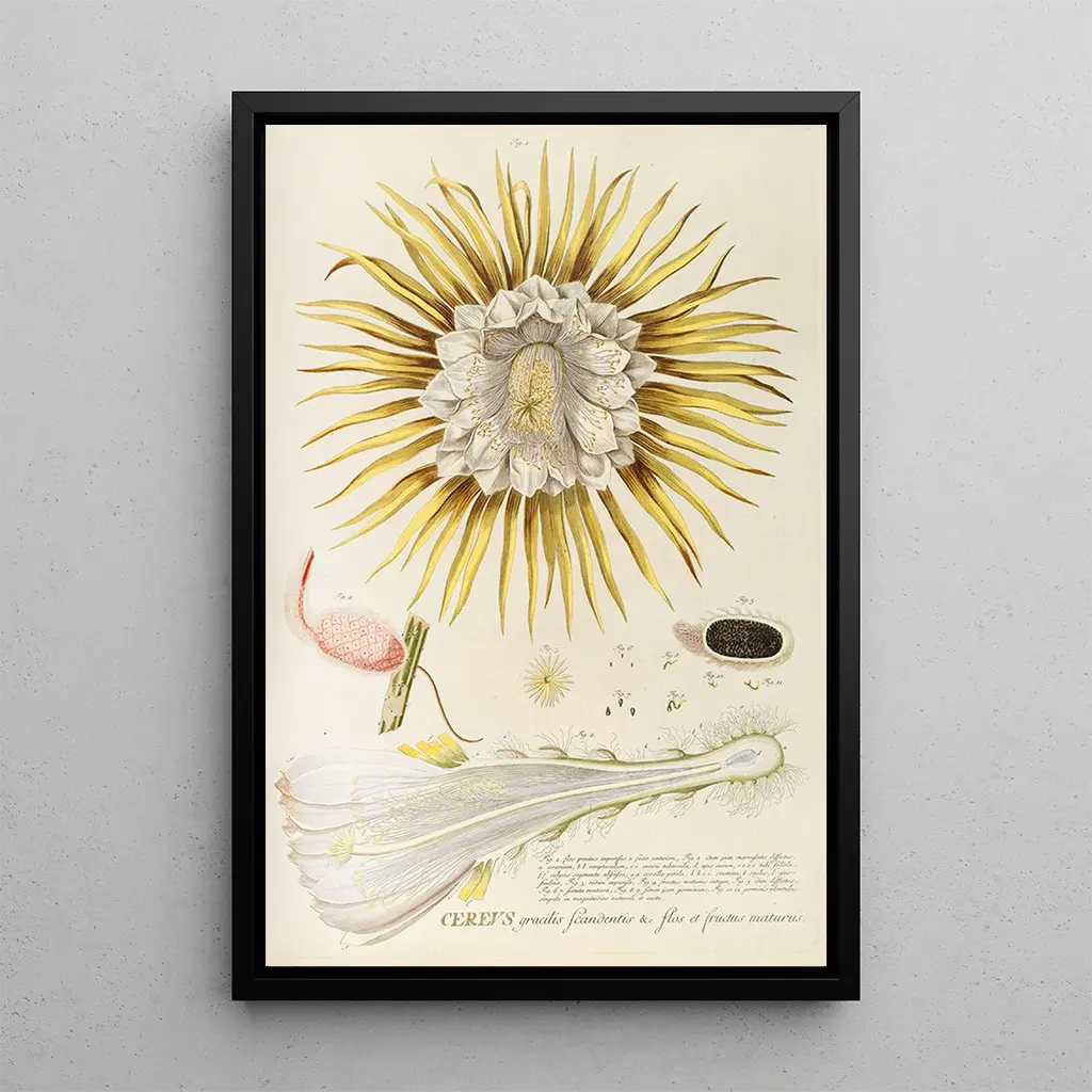 Cierge IV : a dance of light and nature In this captivating artwork, Cierge IV, Georg Dionysius Ehret transports us to a universe where nature and light intertwine. The composition highlights a delicate harmony of colors, oscillating between vibrant shades and softer nuances, thus creating a soothing atmosphere. The watercolor technique, used with mastery, captures the transparency of the petals and the brightness of the leaves, bringing each detail to life. This art print evokes a serene contemplation, where each element seems to vibrate under the effect of a gentle and enveloping light. Georg Dionysius Ehret : a pioneer of artistic botany Georg Dionysius Ehret, active in the 18th century, is recognized as one of the most influential artists in the field of botanical illustration. His work stands out for scientific precision combined with rare artistic sensitivity. Raised in Germany, he was heavily influenced by the botanical discoveries of his time, which led him to collaborate with renowned naturalists. His rococo style, characterized by flowing forms and meticulous details, has left an indelible mark in the art world. Cierge IV perfectly fits into this tradition, celebrating the beauty of nature while meeting the scientific standards of his era. A decorative acquisition with multiple assets The art print of Cierge IV is an ideal decorative piece to enhance your interior, whether in a living room, office, or bedroom. Its print quality and fidelity to the original artwork guarantee an exceptional aesthetic rendering, adding a touch of sophistication to your space. This art print, with its delicate nuances and soothing light, invites dreaming and contemplation. By choosing this canvas, you opt for a piece that not only beautifies but also tells a story, that of an artist passionate about nature and science.