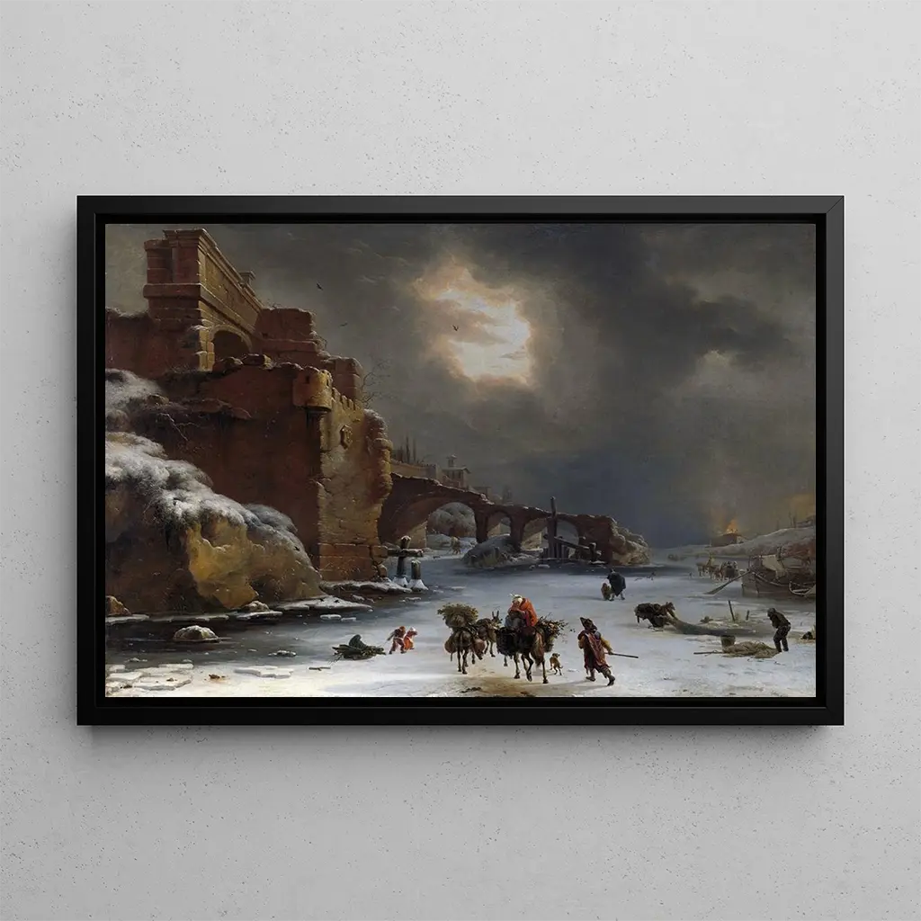 Walls of the City in Winter: an urban scene imbued with melancholy Walls of the City in Winter, a striking art print by Willem Schellinks, captures the essence of a city under a snowy blanket. The walls, covered in frost, seem to tell stories of solitude and fleeting beauty. The cool shades of blue and gray dominate, creating an atmosphere that is both melancholic and poetic. The composition, with its architectural lines and delicate shadows, invites a deep contemplation of urban life in winter. Every detail, from snowflakes to reflections on the walls, contributes to an immersion in this winter scene, where the silence of the snow seems to soothe the tumult of the city. Willem Schellinks: a witness to urban life in the 17th century Willem Schellinks, a Dutch painter of the 17th century, is renowned for his depictions of cityscapes and scenes of everyday life. His style, influenced by the Baroque, is distinguished by striking realism and a keen attention to detail. Schellinks was able to capture the essence of his era, offering a valuable glimpse into life in Dutch cities. Through his works, he evokes emotions and atmospheres, as in Walls of the City in Winter, where the beauty of winter blends with nostalgia. His artistic legacy continues to inspire art lovers today. A decorative acquisition with multiple assets The art print of Walls of the City in Winter is a perfect choice to enrich your interior decor. Whether in a living room, office, or bedroom, this canvas brings a unique and soothing atmosphere. Its printing quality ensures remarkable fidelity to the nuances and details of the original work, allowing you to fully enjoy its charm. By integrating this painting into your space, you create a captivating focal point that sparks admiration and reflection. This Schellinks piece, with its winter ambiance, is a true asset for any decor, combining aesthetics and emotion.