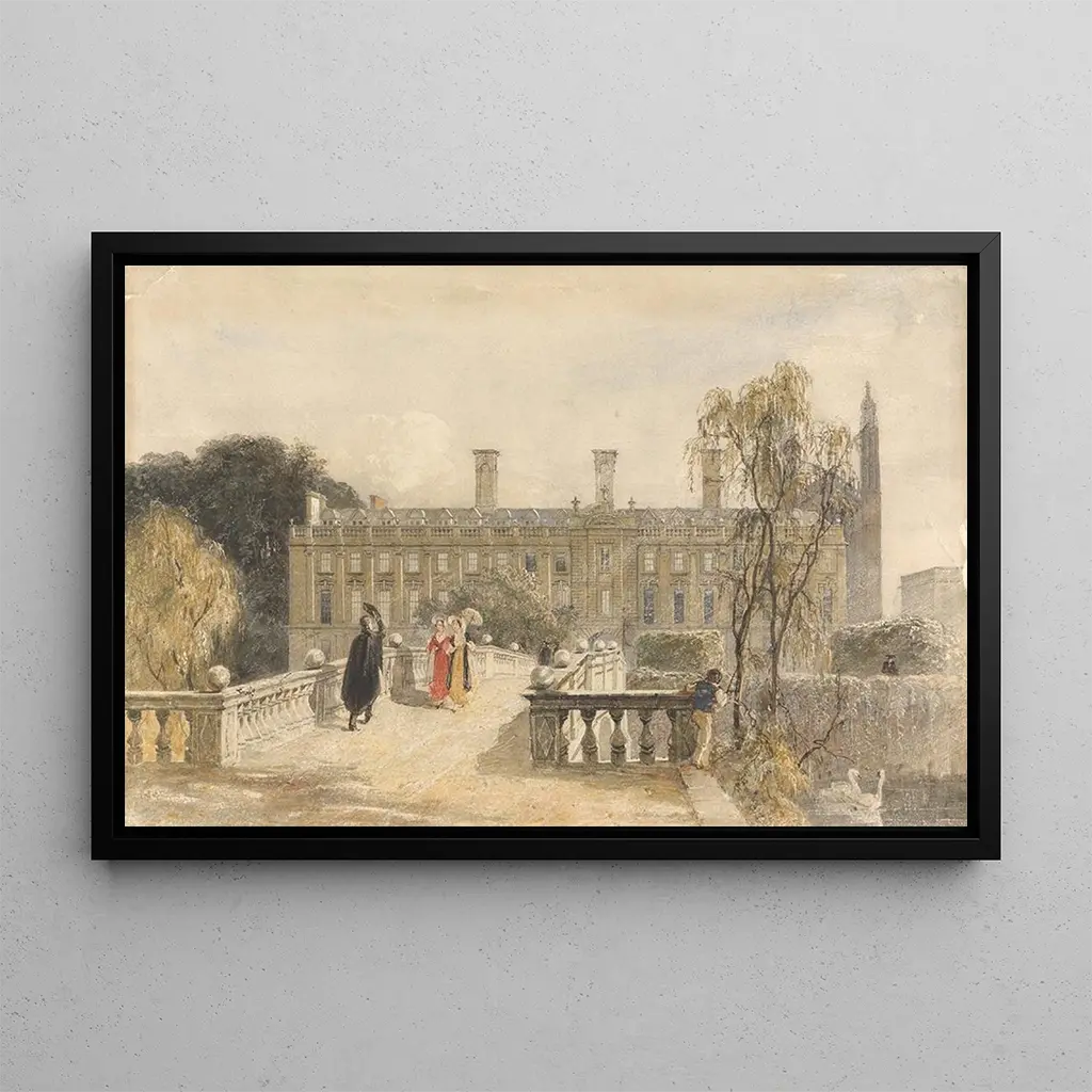 Founded in 1326, Clare College is one of the oldest colleges at the University of Cambridge. Its architecture, blending Gothic and neoclassical styles, reflects the evolution of artistic trends over the centuries. Medieval architectural influences mingle with more modern touches, creating a cohesive and majestic ensemble. This place has hosted many influential thinkers and artists, contributing to its reputation for excellence. The representation of Clare College in art highlights not only its historical importance but also its role in British academic culture, making this art print a tribute to a living heritage.