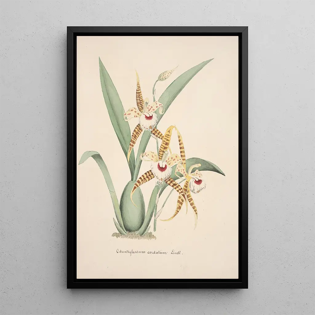 Collection of Orchid Art Print Pl19: A Captivating Floral Harmony The art print Collection of Orchid Art Print Pl19 is a true ode to nature, where each flower is depicted with remarkable finesse. The vibrant shades of yellow, red, and green blend to create a dynamic and captivating composition. The painting technique, likely inspired by botanical methods, captures the texture of the petals and the depth of the foliage, offering an immersive visual experience. This piece invites contemplation and wonder, as if one were in the heart of a secret garden, where each orchid tells a unique story. Anonymous: A Testament to 18th Century Decorative Arts The artist of this art print, although remaining anonymous, represents a flourishing artistic movement of the 18th century, where decorative arts and botany intersect. This period is marked by a great interest in nature, often explored by artists through meticulous studies of flowers and plants. Floral works, like the Collection of Orchid Art Print Pl19, were often intended to embellish aristocratic interiors, reflecting a refined taste for natural beauty. This painting perfectly illustrates the importance of nature in the art of that era, where every detail is carefully observed and depicted. A Decorative Acquisition with Multiple Benefits The art print Collection of Orchid Art Print Pl19 is a decorative choice that will enhance your living space, whether in a living room, office, or bedroom. Its printing quality ensures exceptional fidelity to the colors and details of the original work, bringing a touch of freshness and elegance to your interior. This piece, with its vibrant floral motifs, adapts to various decorating styles, from traditional to modern. By choosing this canvas, you not only add an artistic element to your decor but also invite the beauty of nature into your daily life.