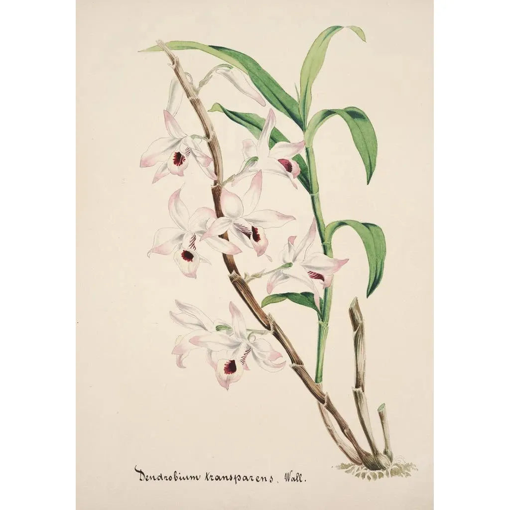 This anonymous artwork, probably dating from the 19th century, is part of a tradition where floral art was both an aesthetic expression and a botanical study. Artists of that era, influenced by the Romantic movement, sought to immortalize the beauty of flowers, often perceived as symbols of passion and delicacy. Although the artist's identity remains unknown, the finesse of their work demonstrates an in-depth knowledge of forms and colors, characteristic of floral artists of their time. Orchids, in particular, were prized for their rarity and elegance, making them a favored subject.