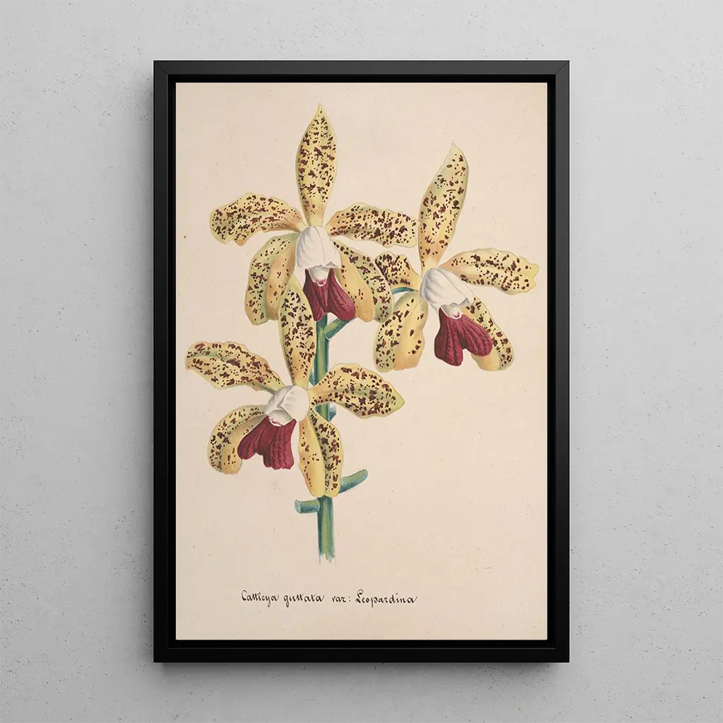 The anonymous artist of this piece is part of a rich artistic tradition, where flowers, especially orchids, are celebrated for their beauty and symbolism. This artwork comes from a time when floral art was flourishing, particularly in the 19th century, when botanical explorations fascinated the public. Although the artist's identity is lost in time, their work demonstrates great technical mastery and sensitivity to nature. The influences of the period, marked by a growing interest in botany and floral aesthetics, are evident in this vibrant and lively composition.