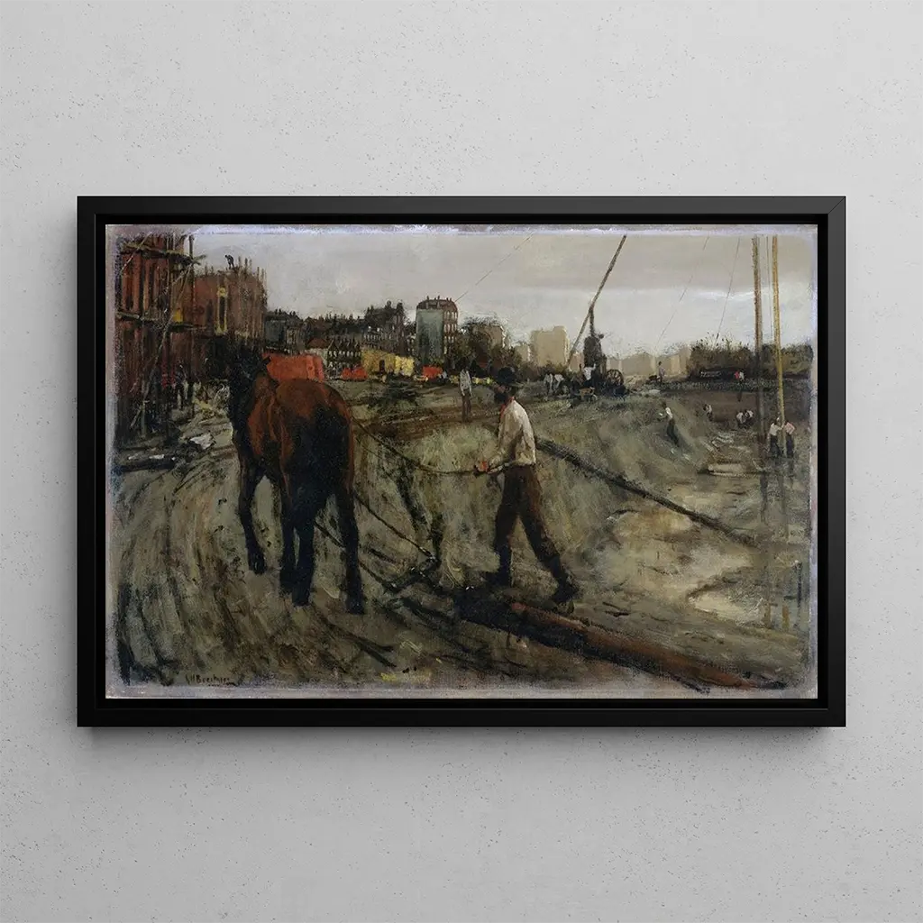 Construction Site: A Striking Vision of Human Effort The art print of "Construction Site" by George Hendrik Breitner immerses us in the hustle and bustle of a building site, capturing the energy and dynamism of the era. The earthy colors and play of shadows create an atmosphere that is both realistic and evocative. Breitner uses bold brushstrokes to depict workers at work, highlighting their determination and strength. This piece bears witness to a pivotal moment in the history of urbanization, where progress and industrialization shape the cityscape. George Hendrik Breitner: a Witness to Modernity George Hendrik Breitner, a Dutch painter of the 19th century, is renowned for his depictions of urban life and the working class. Influenced by the Impressionist movement, he was able to capture the modernity of his time through scenes of everyday life. His ability to immortalize fleeting moments and explore themes of industrialization and urbanization has made him an essential artist. Breitner was also a pioneer in using photography as a reference tool for his works, thereby enriching his artistic approach. A Decorative Acquisition with Multiple Assets The art print of "Construction Site" is a decorative piece that will enhance your living space. Perfect for an office or a living room, this canvas evokes hard work and the spirit of innovation. The quality of the print ensures fidelity to the details and colors of the original artwork, while offering a strong aesthetic appeal. By integrating this piece into your decor, you add not only a touch of elegance but also a reflection on human effort and progress, making your interior an inspiring and dynamic place.