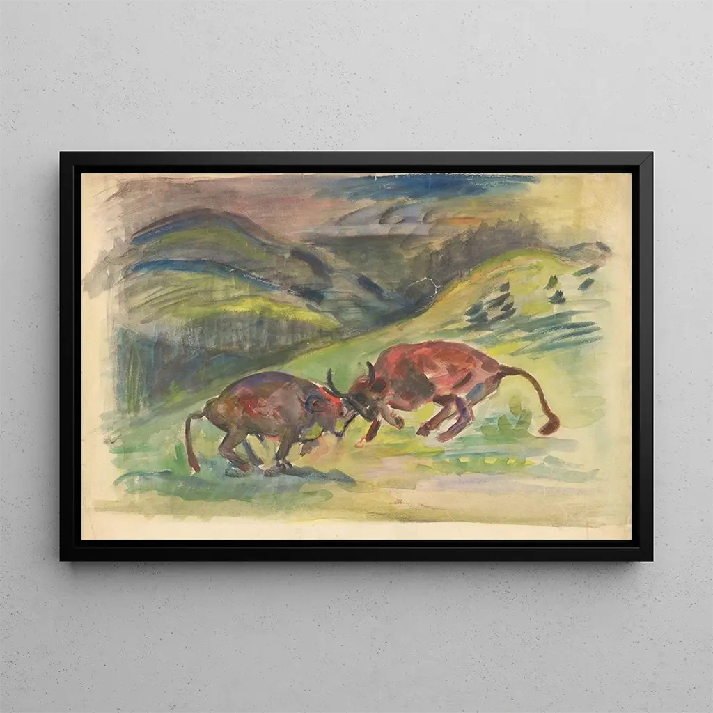 The art print of Corrida by Arnold Peter Weisz-Kubínčan evokes the dramatic tension and energy of a bullfight, capturing movement and emotion in a vibrant painting. The warm and dynamic colors, blending the red of blood and the gold of costumes, immerse the viewer in the heart of this Spanish tradition. The artist's technique, which merges realism with a touch of expressionism, brings each character to life, from matadors to spectators, creating a palpable atmosphere of passion and danger. This piece invites reflection on the beauty and brutality of this ancient art.