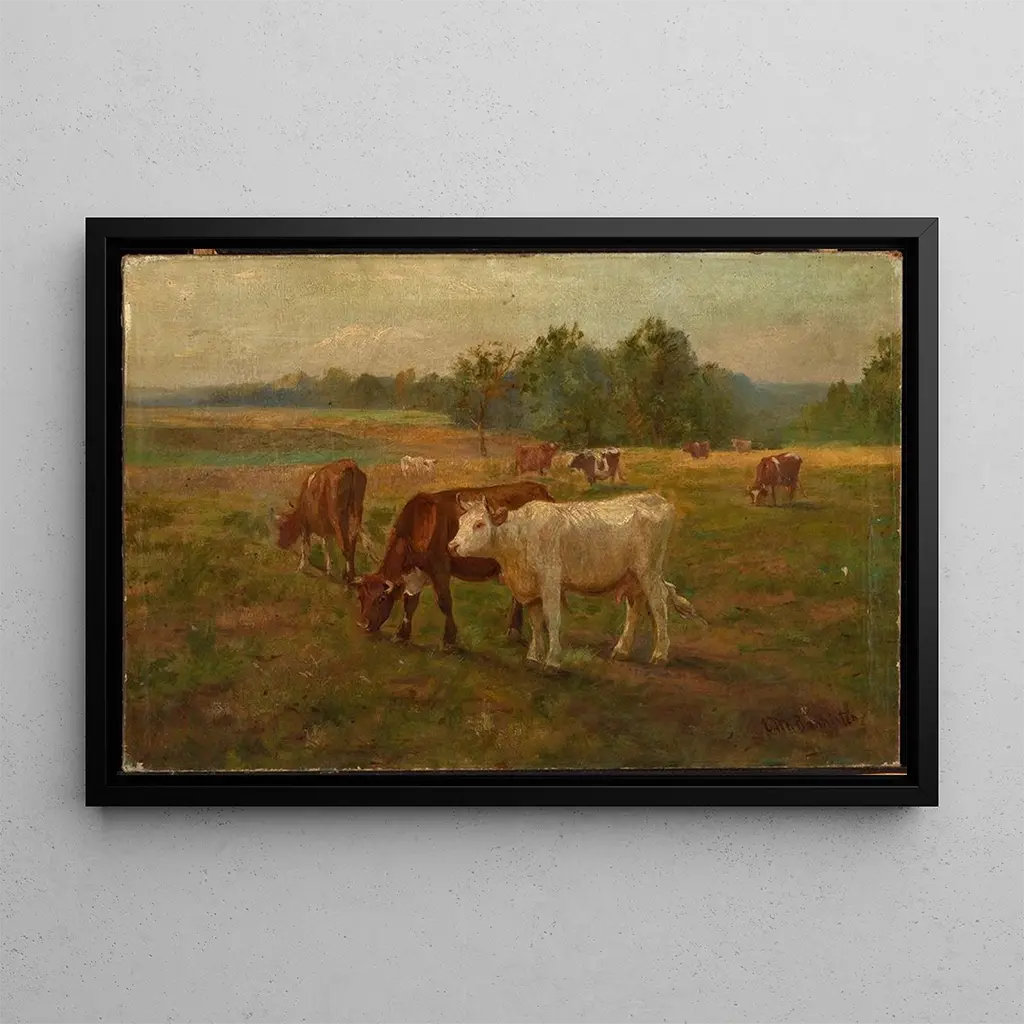 The reproduction of the painting "Cows" is a decorative piece that harmoniously fits into various spaces, whether a living room, office, or bedroom. Its faithful print quality and soothing colors bring a touch of nature to your interior. By choosing this canvas, you opt for a work that not only enhances your decor but also evokes an atmosphere of serenity and peace. With its undeniable aesthetic appeal, this art print is sure to attract art lovers and enthusiasts of bucolic landscapes.
