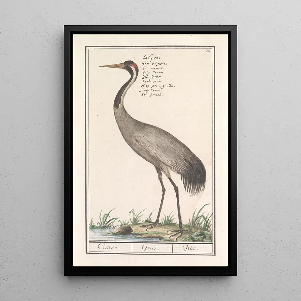 This art print of the Grayscale Crane Grus grus is an ideal decorative piece for various spaces, whether in a living room, office, or bedroom. Its print quality and fidelity to the original details make it an attractive choice for art and nature enthusiasts. The piece adds a touch of sophistication and tranquility to your interior, while sparking conversations about the beauty of the animal world. By choosing this print, you opt for a decoration that combines culture and nature, enriching your environment.