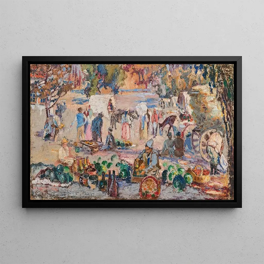 Marché de Crimée : une scène vibrante de la vie quotidienne Dans cette art print du tableau Marché de Crimée, Nikolai Ivanovich Kulbin nous plonge au cœur d'une scène animée où les couleurs éclatantes et les détails minutieux capturent l'essence de la vie sur le marché. Les personnages, vêtus de costumes traditionnels, s'affairent autour des étals chargés de produits locaux, tandis que la lumière joue sur les surfaces, créant une atmosphère chaleureuse et accueillante. La technique de Kulbin, qui mêle habilement le réalisme et une touche d'impressionnisme, donne vie à cette composition, invitant le spectateur à s'imaginer dans ce lieu vibrant d'échanges et de rencontres. Nikolai Ivanovich Kulbin : un maître du réalisme russe Nikolai Ivanovich Kulbin, actif à la fin du XIXe siècle et au début du XXe siècle, est reconnu pour son talent à représenter la vie quotidienne avec une grande précision. Influencé par le mouvement réaliste, il a su capturer les nuances de la société russe de son époque, tout en intégrant des éléments de l'impressionnisme. Kulbin a également été membre de l'Association des artistes russes, ce qui témoigne de son engagement envers l'art et sa volonté de représenter la réalité de manière authentique. Son œuvre Marché de Crimée est un exemple parfait de son style, mêlant tradition et modernité, et témoignant de l'importance de la culture locale. Une acquisition décorative aux multiples atouts La reproduction du tableau Marché de Crimée est un choix idéal pour enrichir votre décoration intérieure, que ce soit dans un salon, un bureau ou une chambre. Sa qualité d'impression et sa fidélité aux couleurs originales en font une pièce d'art qui attire le regard et suscite l'intérêt. En intégrant cette toile dans votre espace, vous apportez une touche d'élégance et d'authenticité, tout en célébrant la richesse de la culture russe. Ce tableau, avec son ambiance vivante et chaleureuse, saura sans aucun doute égayer votre intérieur et offrir une atmosphère conviviale.
