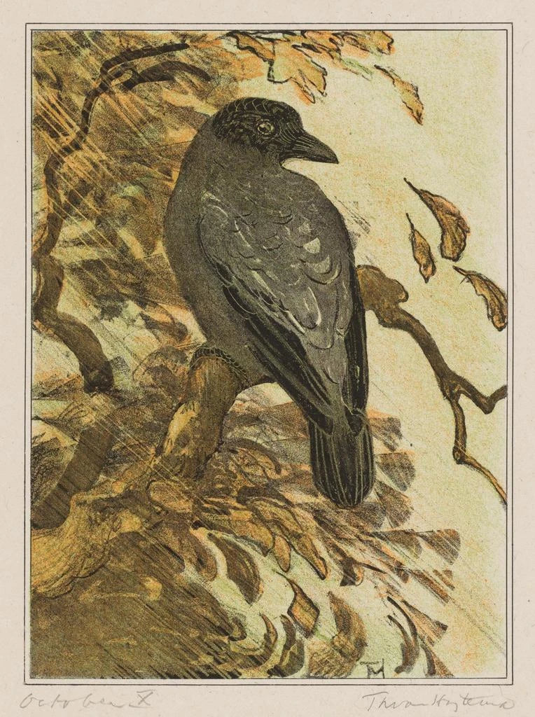 Crow sitting on a branch - Theo van Hoytema Source: Corbeau pie sur une branche - Theo van Hoytema