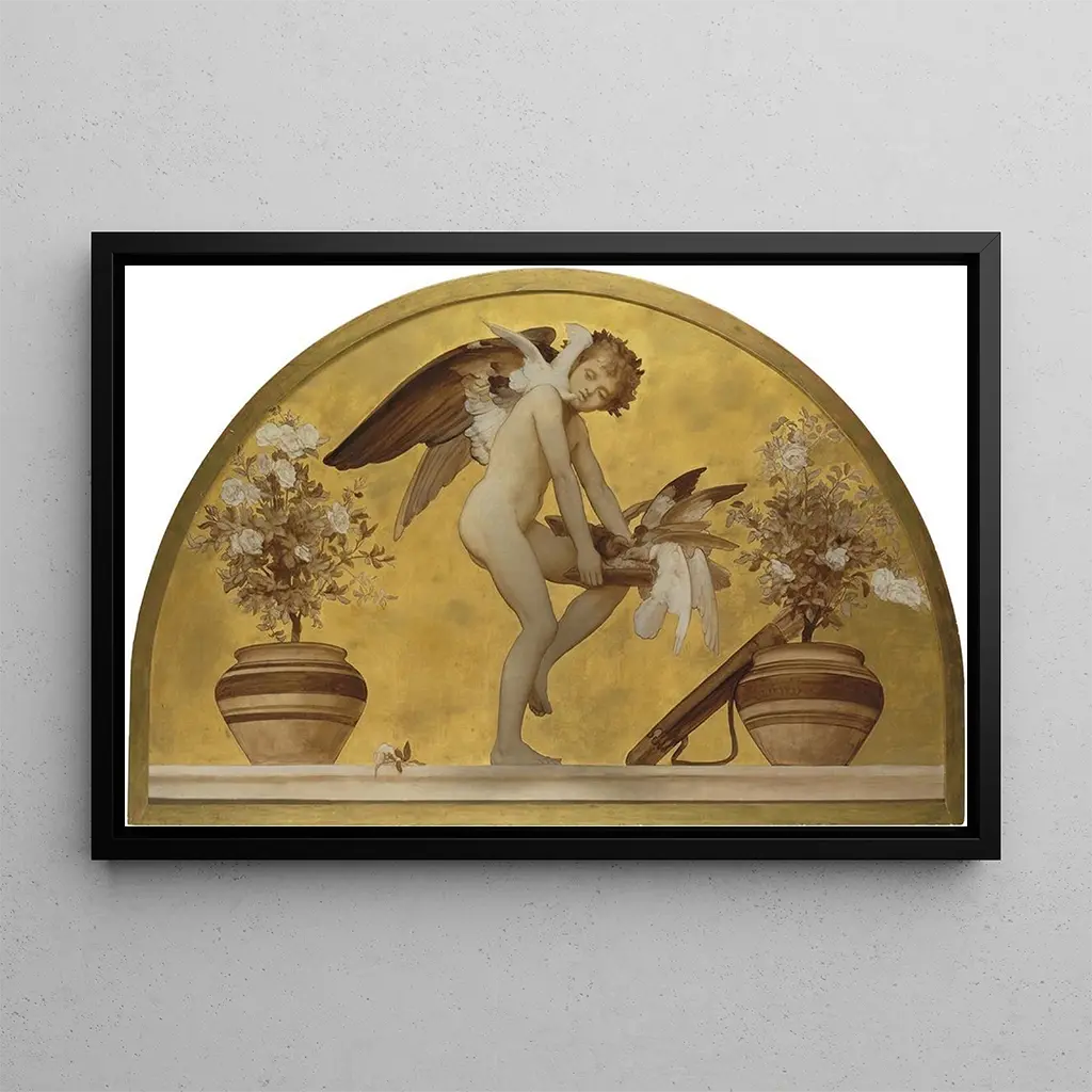 In this captivating artwork, Cupidon and doves, Frédéric Leighton immerses us in a universe where love and peace meet. The delicate composition highlights the famous god of love, depicted with infinite grace, surrounded by doves symbolizing peace. The pastel colors, soft and harmonious, create a serene and soothing atmosphere. Leighton's technique, blending realism and idealization, brings each detail to life, from the feathers of the doves to the delicate features of Cupidon. This art print invites contemplation and escape, offering a poetic vision of love.