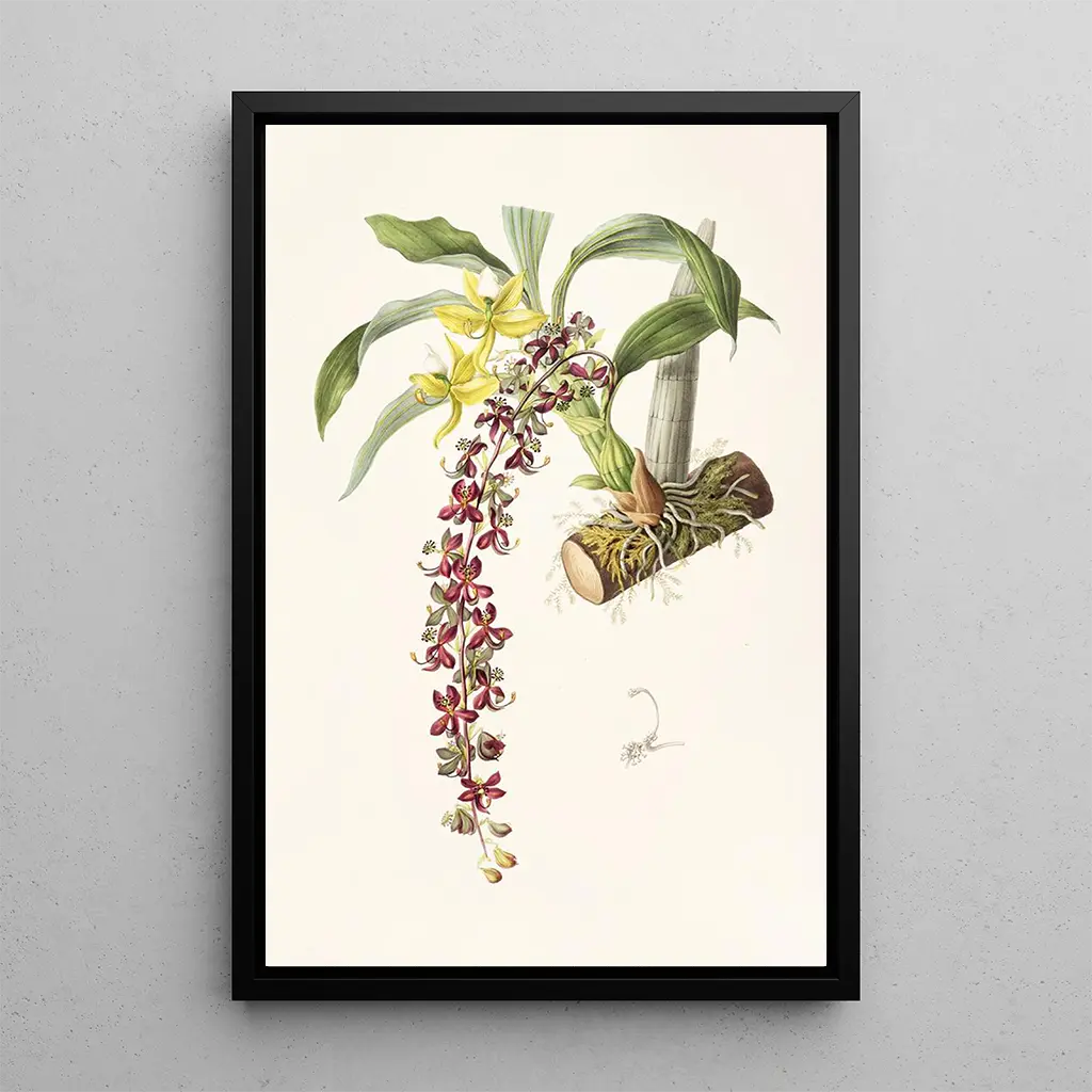 Cycnoches Egertonianum : the floral elegance revealed The art print of Cycnoches Egertonianum transports us into a universe of delicate beauty and visual harmony. This flower, often called "the swan orchid," is characterized by its graceful shapes and shimmering colors, ranging from bright yellow to deep red. Each petal seems to dance under the light, creating an atmosphere of lightness and sophistication. The chosen representation technique highlights subtle details and color nuances, paying tribute to the splendor of nature and the complexity of orchids. James Bateman : a visionary of Victorian botany James Bateman, an emblematic figure of the 19th century, revolutionized the perception and cultivation of orchids. Passionate about botany, he traveled around the world to discover and document rare species. His influence on horticulture is undeniable, and his work contributed to a genuine enthusiasm for orchids in England. By combining science and art, Bateman captured the essence of these exotic flowers in his illustrations, making him a pioneer whose legacy endures to this day. A decorative acquisition with multiple assets The art print of Cycnoches Egertonianum is a decorative piece that will appeal to all botany and art enthusiasts. Perfect for decorating a living room, an office, or a bedroom, this canvas adds a touch of sophistication and elegance to your interior. Its printing quality guarantees fidelity to the details and colors of the original artwork, allowing full appreciation of the beauty of this orchid. With its aesthetic appeal, this art print easily integrates into various decorating styles, making it an ideal choice to enhance your living space.