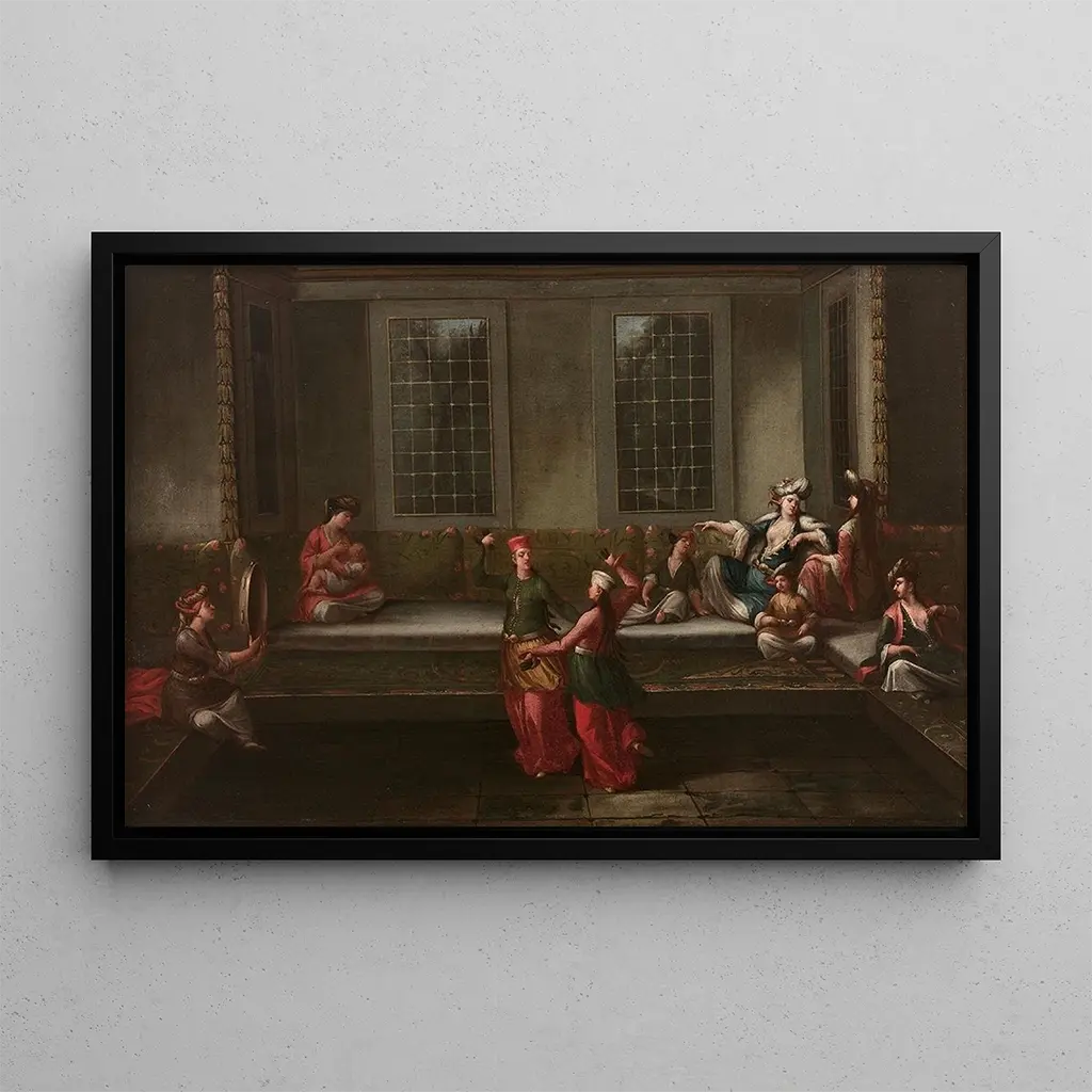 Dance in the Harem: a celebration of Oriental elegance Dance in the Harem, an iconic work by Jean-Baptiste Vanmour, immerses the viewer in a world rich in colors and movement. This canvas depicts a vibrant scene of Oriental dancers, dressed in sumptuous costumes and adorned with sparkling jewelry. The warm tones and delicate patterns create a festive and enchanting atmosphere. Vanmour's technique, blending realism and romanticism, captures the dynamism of the dance while highlighting the beauty of the characters, offering a fascinating glimpse into Oriental culture. Jean-Baptiste Vanmour: a pioneer of Orientalism in the 18th century Jean-Baptiste Vanmour, active in the 18th century, is considered one of the forerunners of Orientalism in European art. His travels to the Orient profoundly influenced his work, allowing him to capture scenes of daily life and cultural traditions with remarkable accuracy. Vanmour was able to translate the exoticism and richness of Oriental cultures through his paintings, contributing to the European fascination with the East during his time. His works, including Dance in the Harem, are valuable testimonies of an era when the East fascinated artists and intellectuals. A decorative acquisition with multiple assets The art print of Dance in the Harem is a captivating decorative choice to enhance your living space. Whether in a living room, reception area, or office, this canvas adds a touch of exoticism and sophistication. Its print quality guarantees fidelity to details and colors, allowing you to fully enjoy the original work. With its undeniable aesthetic appeal, this art print is ideal for those wishing to add an artistic and cultural note to their interior, while celebrating the beauty of dance and the Orient.