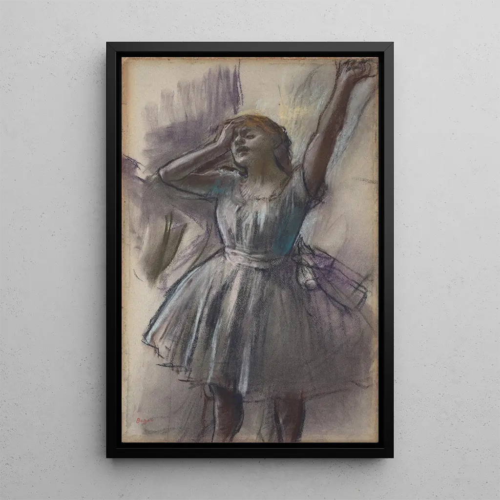 The art print of "Danseuse s'étirant" is a decorative piece that harmoniously fits into various spaces, whether a living room, an office, or a bedroom. Its print quality and fidelity to the original colors make this canvas an attractive choice for art enthusiasts. The work adds a touch of elegance and sophistication, while evoking the passion of dance. By choosing this art print, you offer your interior an artistic and inspiring atmosphere, while celebrating the talent of Edgar Degas.