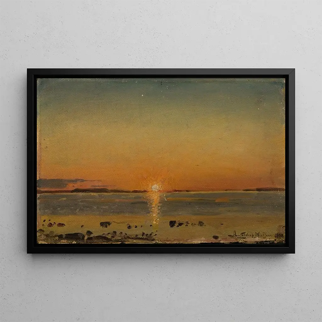 De Eidem Aafjord by Aafjord: a symphony of colors and light The art print of De Eidem Aafjord by Amaldus Nielsen is a piece that evokes the wild beauty of Norwegian landscapes. The vibrant shades of blue and green blend harmoniously, creating a serene and contemplative atmosphere. Nielsen's technique, characterized by delicate brushstrokes, brings each element of the painting to life, from majestic mountains to shimmering reflections on the water. This canvas invites the viewer to escape into a natural world, where light plays a vital role, illuminating details and emphasizing the scene's depth. Amaldus Nielsen: a master of Nordic landscape painting Amaldus Nielsen, active in the late 19th and early 20th centuries, is recognized as one of the leading representatives of the naturalist movement in Norway. Influenced by the spectacular landscapes of his homeland, he captured the essence of nature with remarkable precision. Nielsen was also inspired by French Impressionists, incorporating elements of light and color that characterize his unique style. His work played a key role in the evolution of landscape painting in Norway, making him an essential figure in Scandinavian art history. A decorative acquisition with multiple advantages The art print of De Eidem Aafjord is a decorative piece that integrates perfectly into various spaces, whether in a living room, office, or bedroom. Its reproduction quality guarantees remarkable fidelity to the details of the original work, allowing you to enjoy the beauty of Norwegian nature daily. With its undeniable aesthetic appeal, this canvas adds a touch of serenity and elegance to your interior, while inspiring admiration from your guests. An ideal choice for those looking to enrich their decor with an inspiring piece of art.
