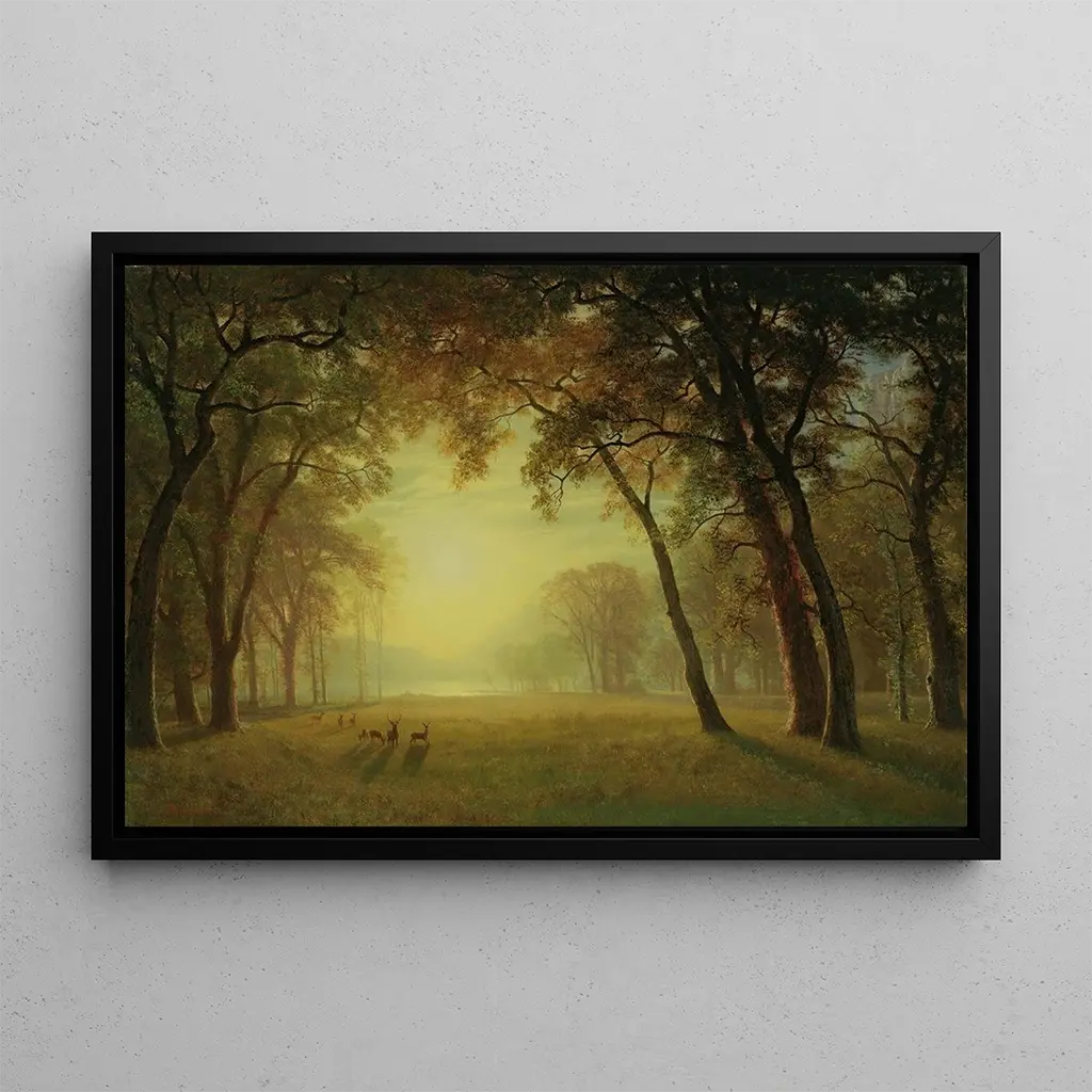 The art print of "Yosemite Deer in a Clearing" is an ideal choice to enhance your interior decor, whether in a living room, office, or bedroom. With its soothing palette and captivating subject, this piece adds a touch of nature and serenity to your space. The quality of the art print guarantees remarkable fidelity to the details of the original work, allowing you to enjoy Bierstadt's aesthetic appeal daily. By incorporating this canvas into your decor, you invite not only natural beauty into your home but also a piece of artistic history that will delight your guests.