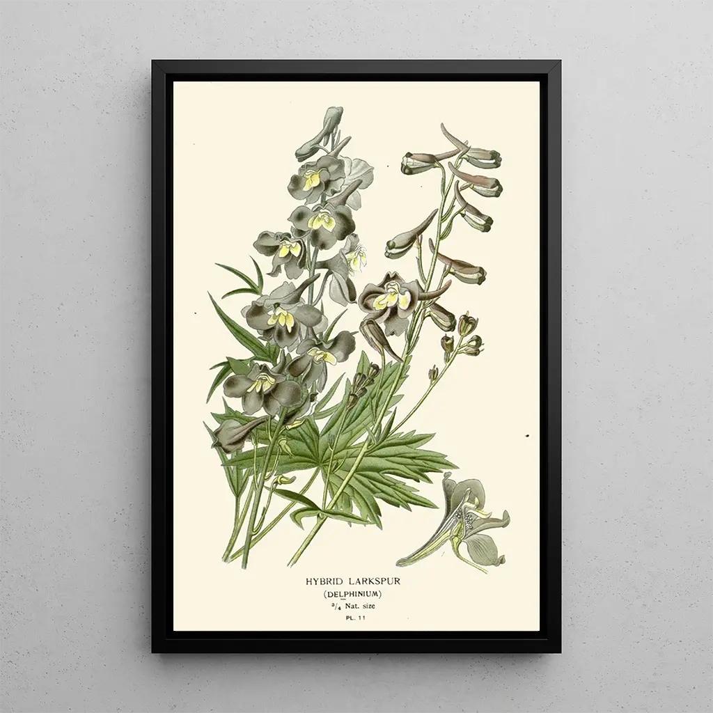 The art print of the "Delphinium hybrid" is a decorative piece that will enhance any space, whether a living room, office, or bedroom. Its print quality and fidelity to the original colors make it an ideal choice for those wishing to bring a touch of freshness and serenity to their interior. This artwork, with its undeniable aesthetic appeal, becomes a focal point that draws the eye and sparks admiration. By integrating this canvas into your decor, you offer your space a touch of nature and timeless elegance.