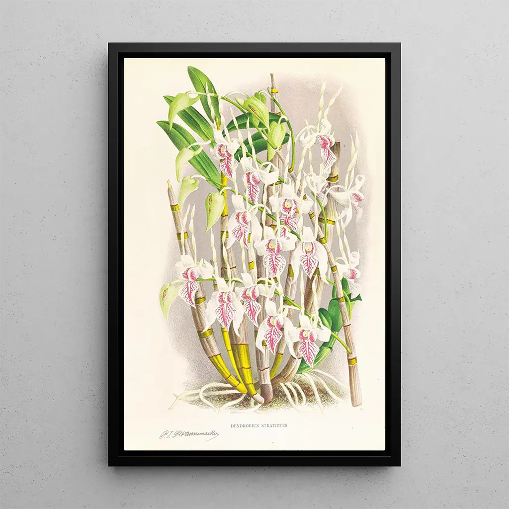 The art print of Dendrobium stratiotes is a wise decorative choice to bring a touch of nature into your interior. Whether in a living room, office, or bedroom, this canvas will captivate attention and create a serene atmosphere. Its printing quality guarantees fidelity to the colors and details of the original work, making this painting a true aesthetic asset. By integrating this piece into your decor, you choose a work that combines elegance and culture, while celebrating the beauty of exotic flowers.