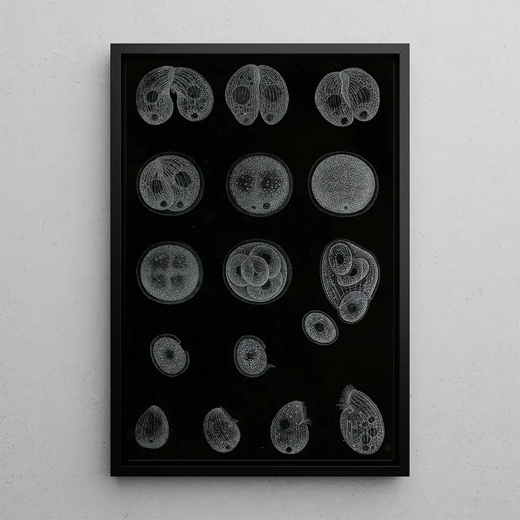 Development of an art print: a microscopic dance "Development of an art print" by Alfred Frödl transports us into a microscopic world, revealing the hidden beauty of unicellular organisms. With vibrant colors and fluid shapes, this artwork evokes a dynamic of life, almost dancing, where each infusoire seems to come alive before our eyes. Frödl's technique, combining scientific precision with artistic sensitivity, creates a captivating atmosphere, inviting the viewer to explore the mysteries of biology. The piece is a celebration of the diversity and complexity of life, highlighting creatures often invisible to the naked eye. Alfred Frödl: an artist at the crossroads of art and science Alfred Frödl, active in the 20th century, is an artist whose work illustrates the intersection between art and science. His passion for biology and his interest in scientific discoveries of his time led him to explore subjects such as infusoria, thus revealing their beauty and ecological importance. Frödl was influenced by advances in microbiology and sought to educate the public through his art, making him a pioneer in using art as a means of awareness. His legacy endures, inspiring new generations of artists to combine creativity and scientific knowledge. A decorative acquisition with multiple assets The art print of "Development of an infusoire" is an ideal decorative choice for those who wish to add a touch of originality to their interior. Whether in an office, a living room, or a bedroom, this canvas draws the eye and sparks curiosity. Its printing quality ensures exceptional fidelity to the details of the original work, allowing you to fully enjoy the visual richness it offers. By integrating this piece into your space, you create an atmosphere that is both artistic and educational, while celebrating the beauty of the microscopic world. It is a piece that enriches not only your decor but also your reflection on nature.
