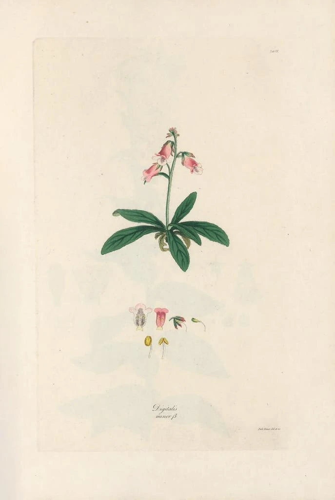 Digitalium monographia Pl06 art print invites you to immerse yourself in a universe where botany blends with art. The meticulous details of the plants, rendered with remarkable precision, reveal the artist's passion for nature. The vibrant colors, ranging from bright greens to delicate shades of pink and blue, create a lively and dynamic atmosphere. Each element of the composition seems to tell a story, an ode to the beauty of the plant world. This piece, both scientific and artistic, offers a true invitation to wonder and contemplation.