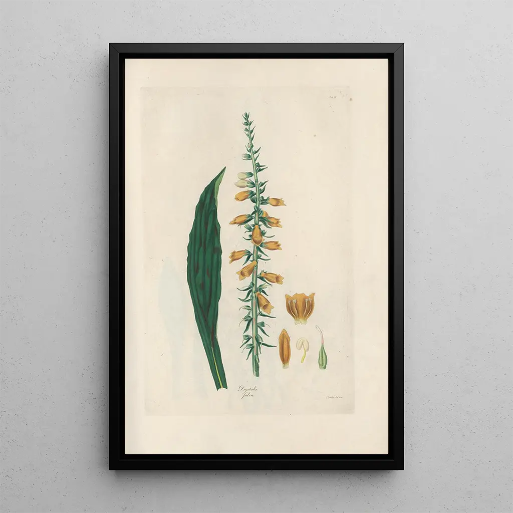 Digitalium monographia Pl09 art print presents itself as a celebration of plant biodiversity. This captivating work, created with exceptional meticulousness, highlights a variety of plants, each depicted with a precision that draws the eye. The vibrant colors and delicate shades create a lively atmosphere, inviting exploration and discovery. The technique used, which appears to be watercolor, pays homage to the ephemeral beauty of nature, while offering visual depth that stimulates the imagination.