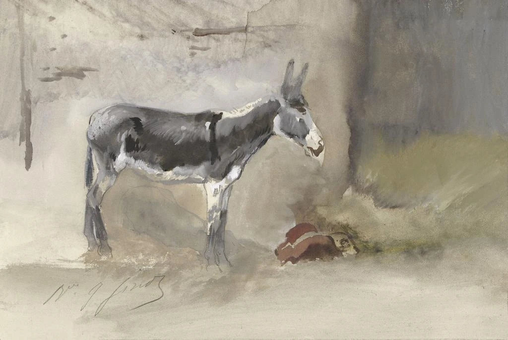 The art print Donkey in a Stable by Jules Baron Finot captures a moment of softness and simplicity in rural life. This piece, rich in detail, depicts a donkey peacefully settled in its natural environment, surrounded by the warmth of a stable. The earthy colors and play of shadows create an intimate atmosphere, inviting the viewer to feel the serenity of this bucolic scene. Finot, with his realistic style, manages to convey an authentic connection between the animal and its habitat, thus celebrating the beauty of everyday life.