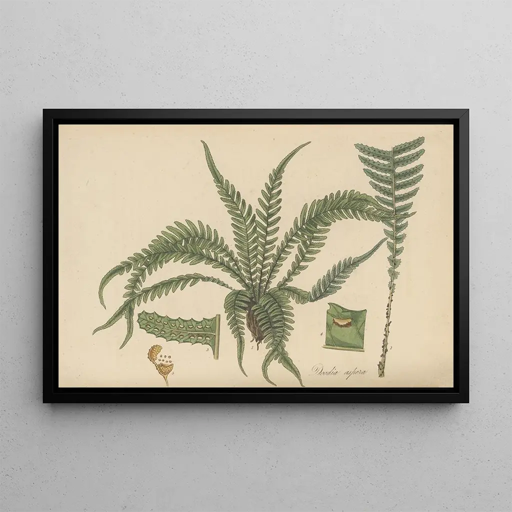 Doodia Aspera: an ode to wild nature Doodia Aspera, a work by William Jackson Hooker, is a fascinating representation of Australian flora, capturing the essence of a nature that is both delicate and robust. This botanical illustration highlights the intricate details of the shimmering leaves, emphasizing the organic beauty of the plant. The vibrant green hues and earthy shades create a lively and authentic atmosphere, inviting the viewer to appreciate the richness of biodiversity. Hooker, as a botanical illustrator, employs a precise technique that pays tribute to the complexity and uniqueness of each element of nature. William Jackson Hooker: pioneer of botanical illustration William Jackson Hooker, a 19th-century British botanist and illustrator, played a crucial role in documenting global flora, particularly that of Australia. His work was influenced by botanical explorations of his time, and he skillfully combined science and art in his illustrations. Hooker was the first director of the Kew Botanical Gardens, where he contributed to the classification and preservation of plant species. Doodia Aspera is a perfect example of his meticulous approach and his commitment to nature, demonstrating the importance of botany in understanding our environment. A decorative acquisition with multiple benefits The art print of Doodia Aspera is an ideal choice for those who wish to bring a touch of nature into their interior decor. Whether in an office, living room, or bedroom, this canvas evokes serenity and the beauty of the plant world. Its printing quality guarantees remarkable fidelity to the details of the original work, allowing you to appreciate every nuance and texture. By integrating this piece into your space, you create a calming and inspiring atmosphere while celebrating the richness of biodiversity. This art print then becomes a decorative element that enriches your daily life and stimulates your connection with nature.