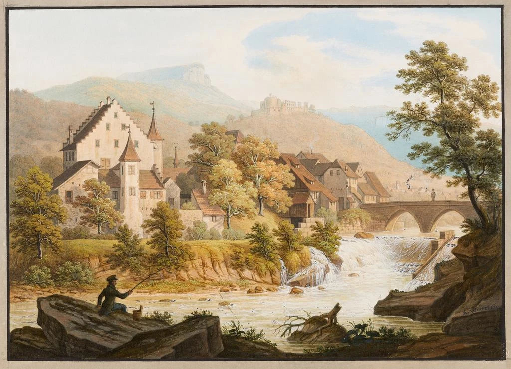 Anton Winterlin, a 19th-century Swiss painter, is renowned for his poetic and luminous landscapes. Influenced by the Romantic movement, he dedicated himself to capturing the beauty of nature, often focusing on rural scenes and Alpine panoramas. His career spanned several decades, during which he evolved while remaining true to his distinctive style. Winterlin was also an active member of the Swiss art scene, contributing to the recognition of landscape art in his country. His work, exemplified by the Dornach Bridge, reflects his love for nature and his desire to share it with the world.
