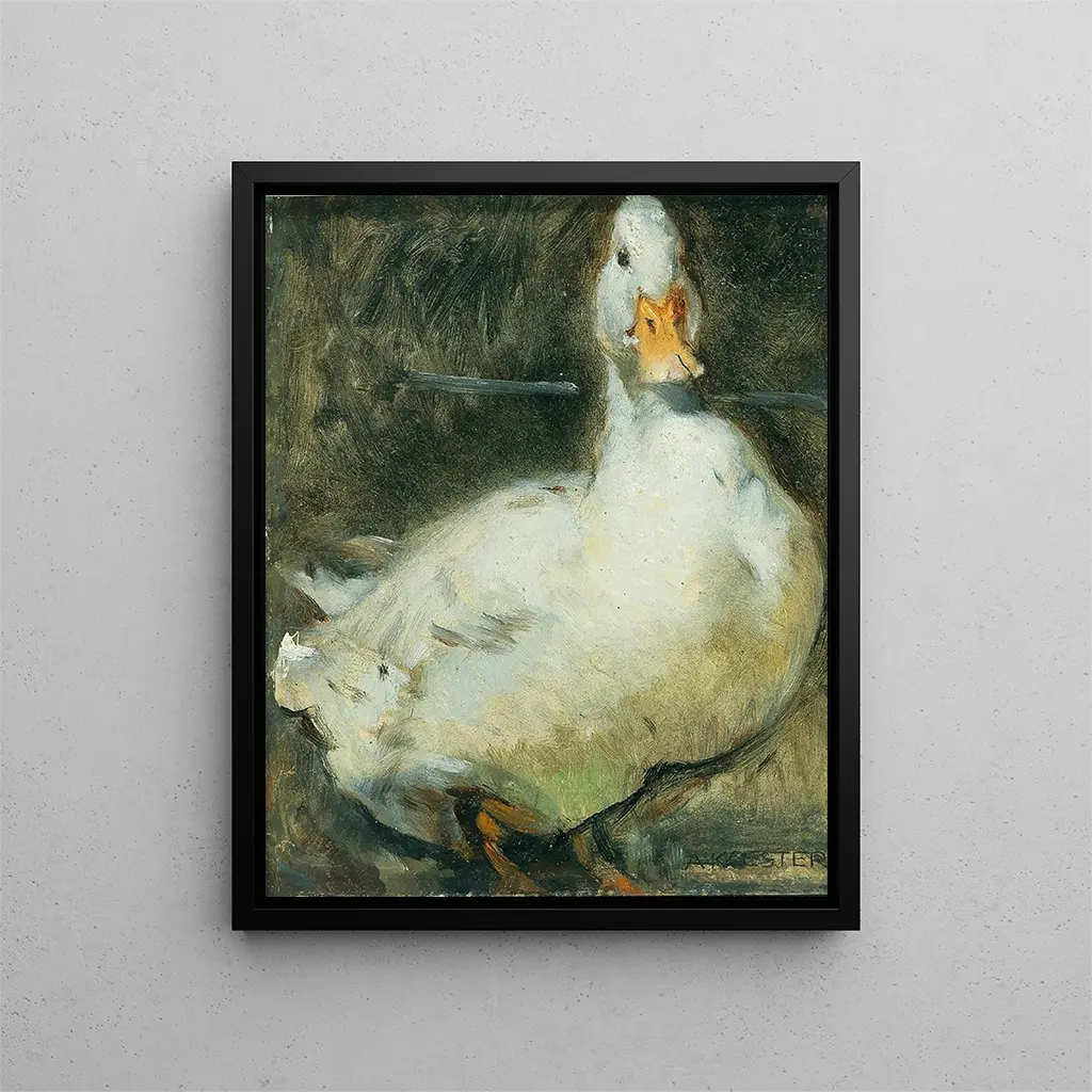 In the fascinating world of animal art, "Canard" by Alexander Koester stands out for its elegance and finesse. This piece, which captures the beauty of a duck in a moment of serenity, invites the viewer to immerse themselves in a world where nature and art meet in rare harmony. Koester, a master of animal representation, manages to convey a palpable emotion through his brushstrokes, making every detail come alive. Gazing at this painting, one is transported to a peaceful landscape, where the duck almost seems to come to life, offering an immersive experience that transcends mere observation.