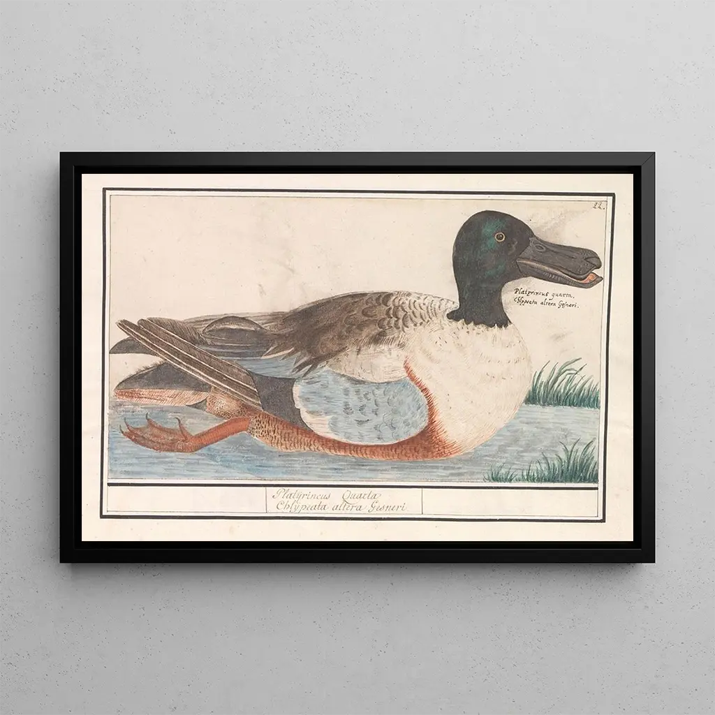 Canard souchet Anas clypeata: a natural elegance by the water's edge The art print of the "Canard souchet Anas clypeata" by Anselmus Botius de Boodt is a true homage to ornithological beauty. This painting, rich in detail, captures the elegance of this duck with its distinctive plumage. The delicate shades of green and brown blend harmoniously, while the aquatic background evokes a peaceful natural environment. The precision of the lines and the finesse of the textures create a lively, almost tangible atmosphere, inviting the viewer to admire the grace of this bird. This piece is a perfect example of how art can celebrate wildlife and flora. Anselmus Botius de Boodt: a glimpse of nature in the 17th century Anselmus Botius de Boodt, a Flemish artist of the 17th century, is renowned for his meticulous representations of animals and plants. His work is rooted in a naturalist tradition, where precise observation of nature is paramount. Influenced by the scientific advances of his time, he skillfully combined art and science, capturing the beauty of species with remarkable rigor. His works, often commissioned by collectors, testify to the importance of depicting nature in Renaissance art, and the "Canard souchet" is a perfect example. A decorative acquisition with multiple assets The art print of the "Canard souchet Anas clypeata" is a decorative piece that will enhance your interior, whether in an office, living room, or bedroom. Its print quality ensures faithful reproduction of the colors and details of the original work, adding a touch of elegance to your decor. This painting, with its natural ambiance, evokes the tranquility of aquatic environments and invites contemplation. By choosing this canvas, you opt for refined decoration while celebrating the beauty of wildlife.