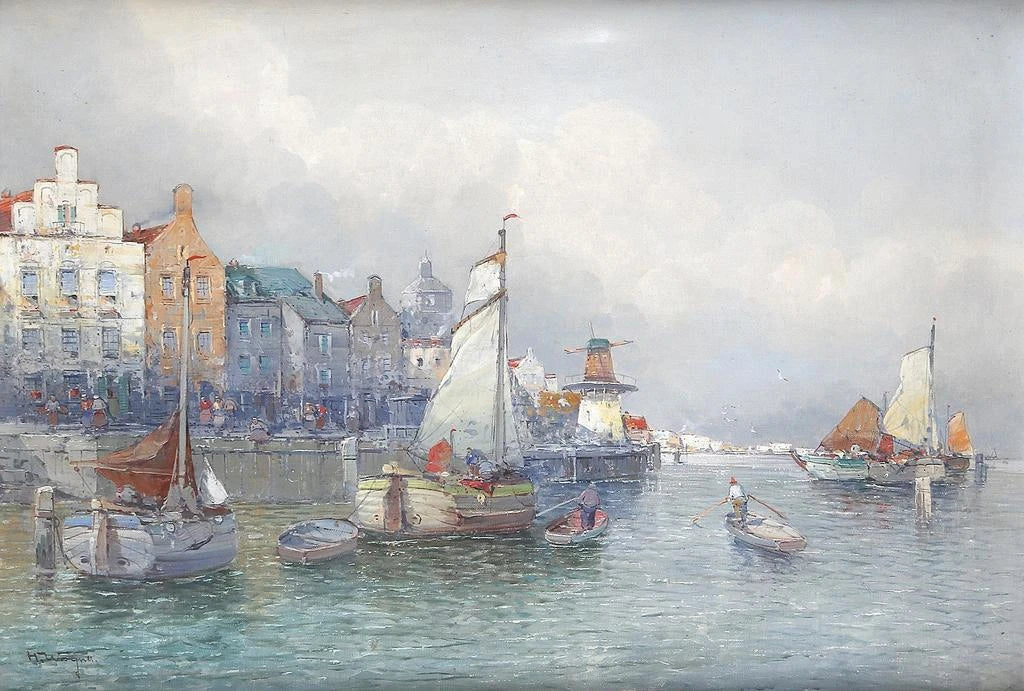 Georg Fischhof, a 19th-century Austrian painter, is renowned for his maritime works that capture the essence of port life. Influenced by the realist movement, he skillfully transcribed the details of everyday life with precision, while adding a poetic dimension to his compositions. Fischhof often explored themes of the sea and ports, reflecting the importance of these places in commerce and culture of his era. His style, characterized by meticulous attention to detail and a rich palette, makes him an essential artist for those interested in maritime art.
